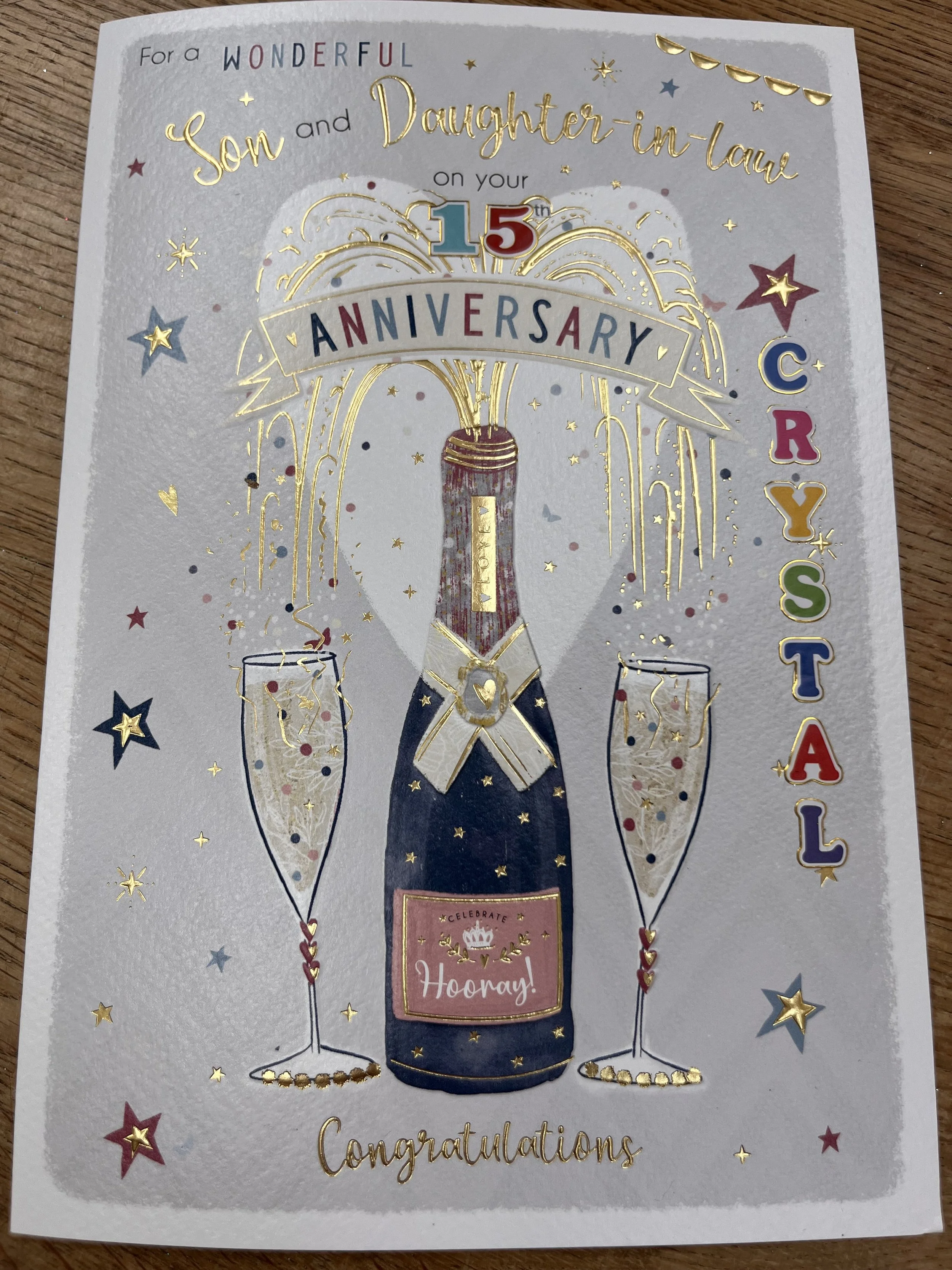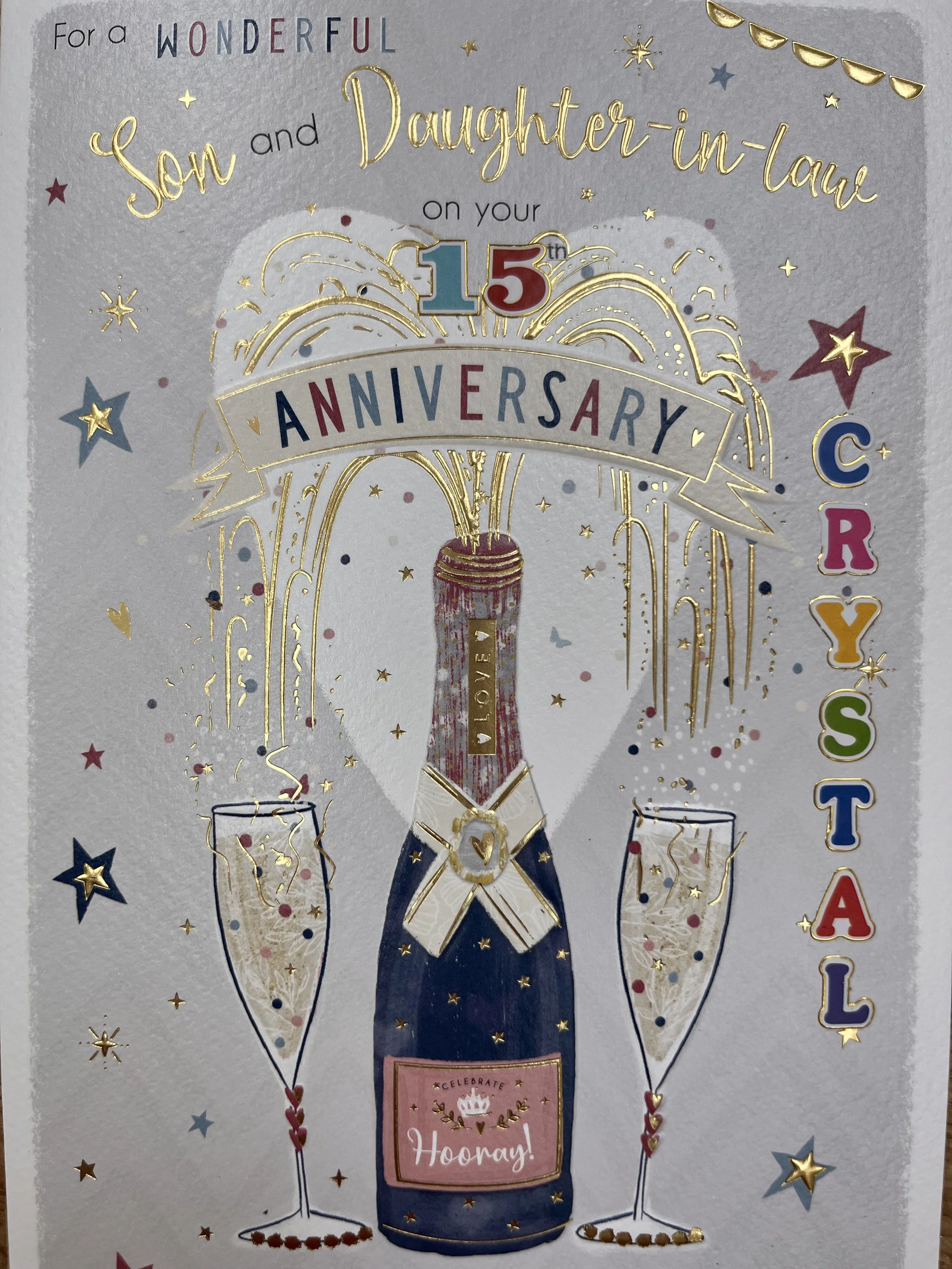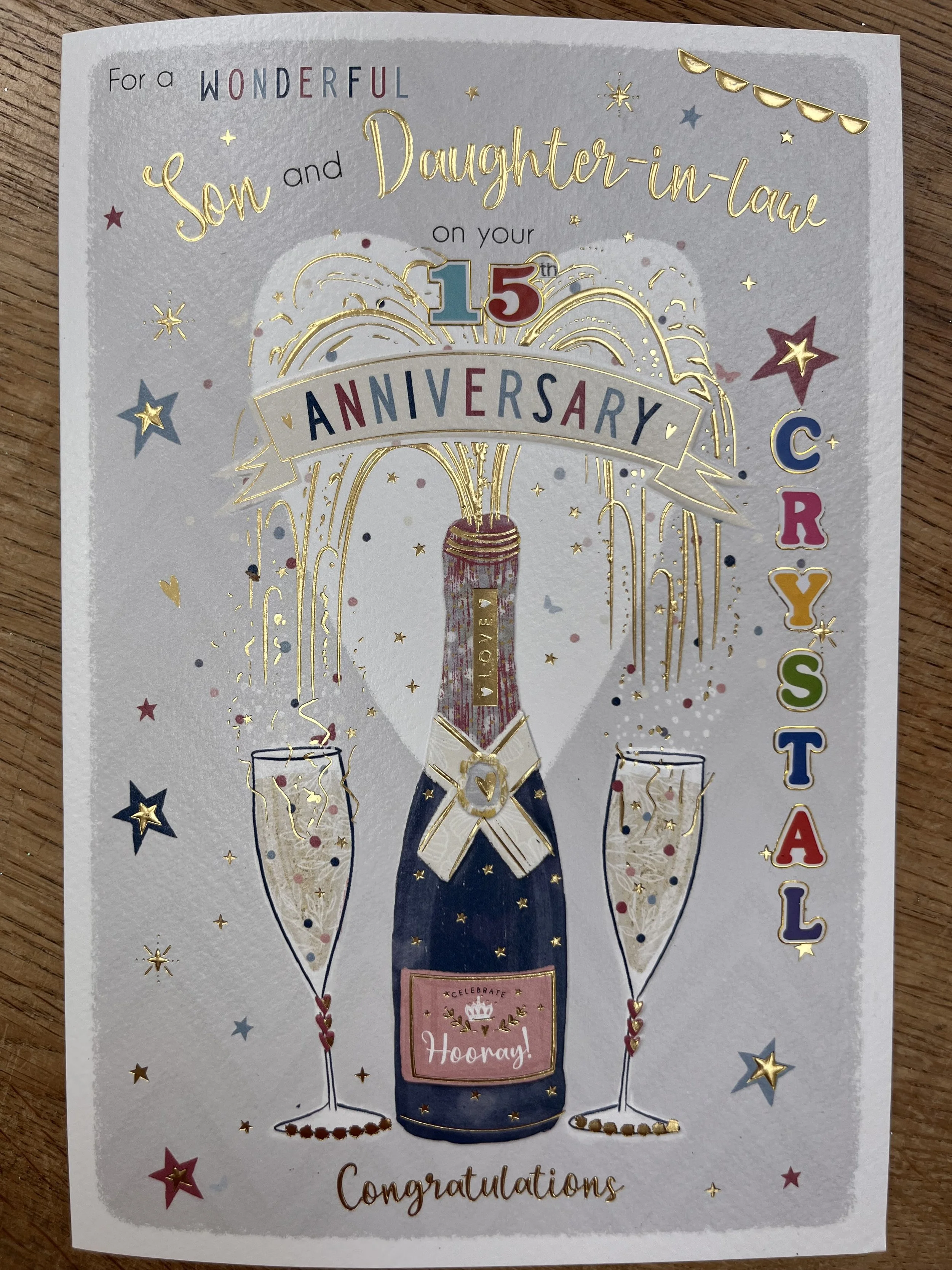 Categories: Select a Category Son and Daughter in law Daughter and Son in law Our Wife Husband 15th anniversary card 15th/ Crystal Son and Daughter in law | Daughter and Son in law | Our | Wife | Husband | 15th anniversary card | 15th Wedding Anniversary card £2.99 Daughter and Son in Law 15th Anniversary card £3.99 Son and Daughter in law 15th anniversary card £3.99 Wife 15th anniversary card £7.99 Our 15th anniversary card £3.50 Husband 15th anniversary card £7.99