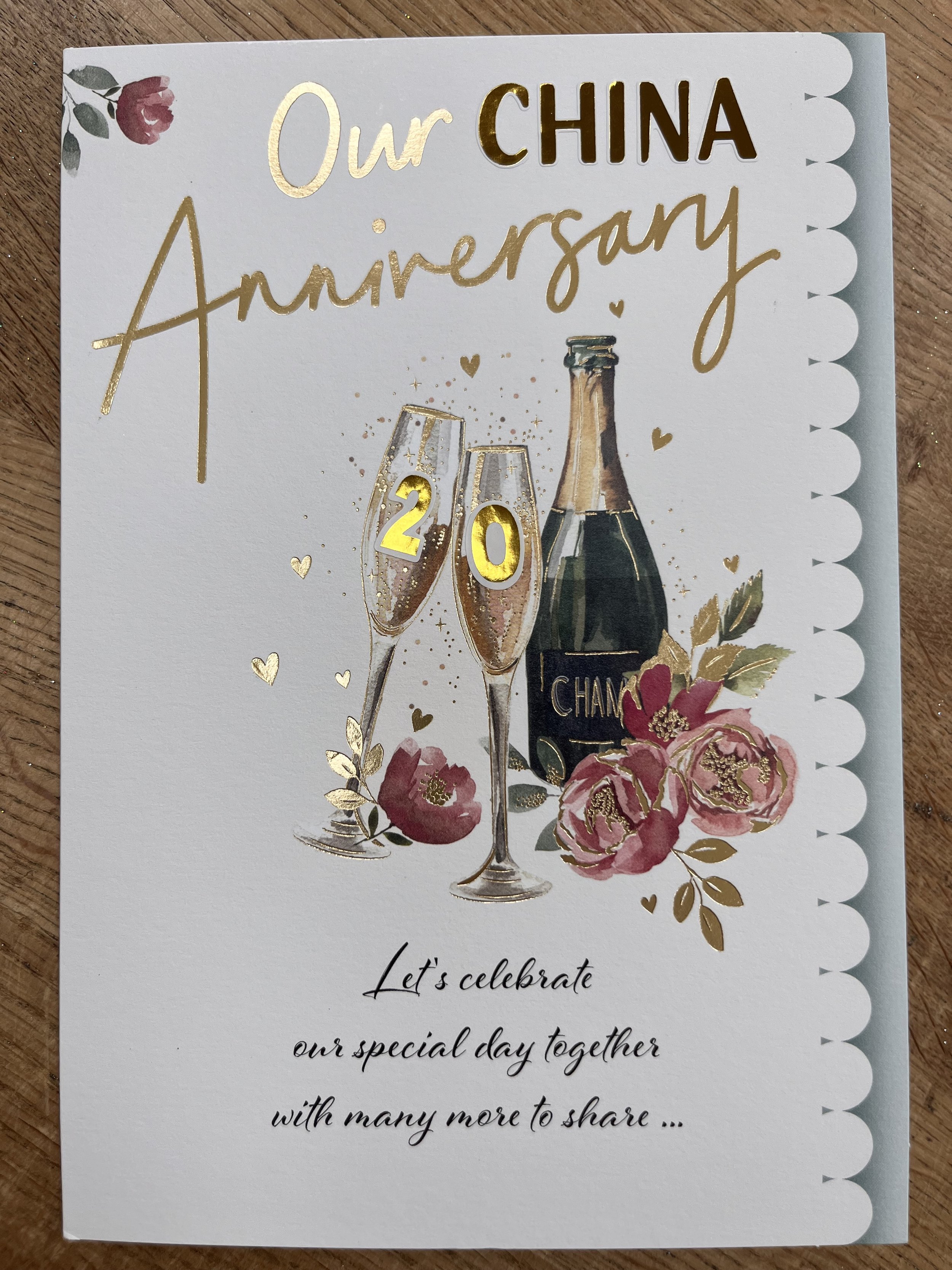 Our China Wedding anniversary card is a HAND FINISHED design that has foiled attachments, effective foiled and inside a colour insert with heartfelt words