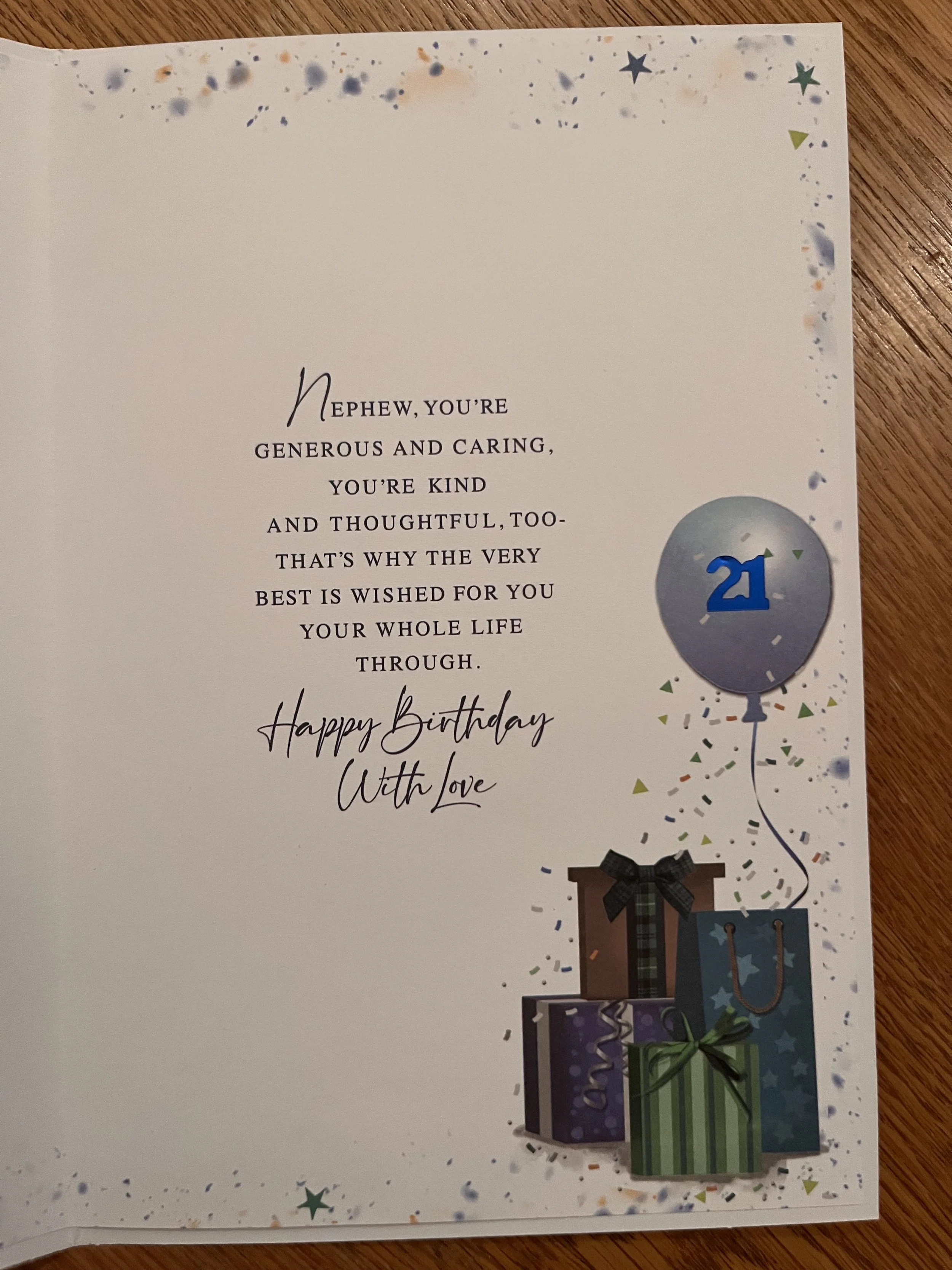 Nephew 21st Birthday Card requires Standard postage