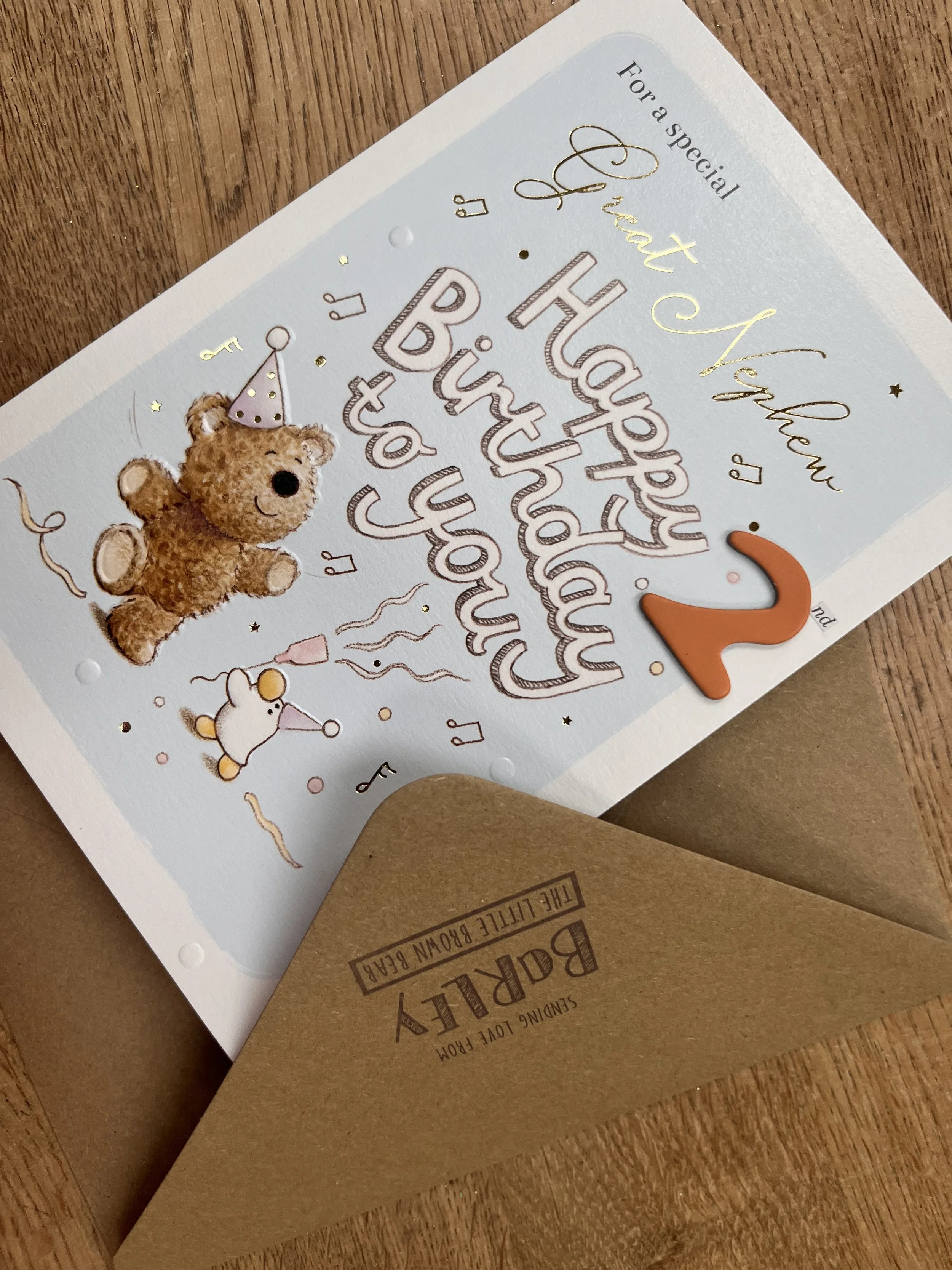Great Nephew Age 2 Birthday Card requires Standard 1st or 2nd class postage