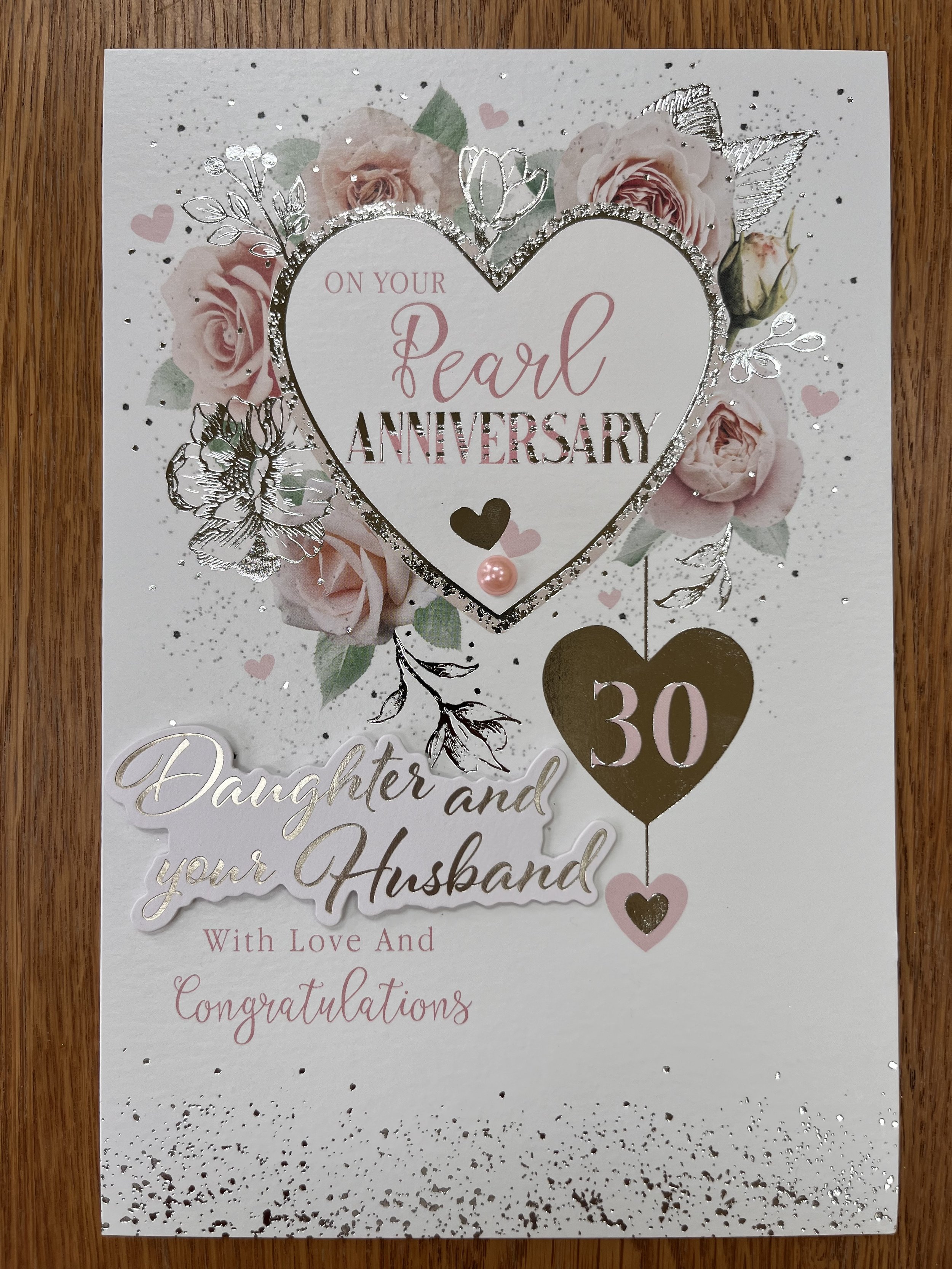 Daughter and Husbands Pearl anniversary card approximate dimensions 23 x 15 cm