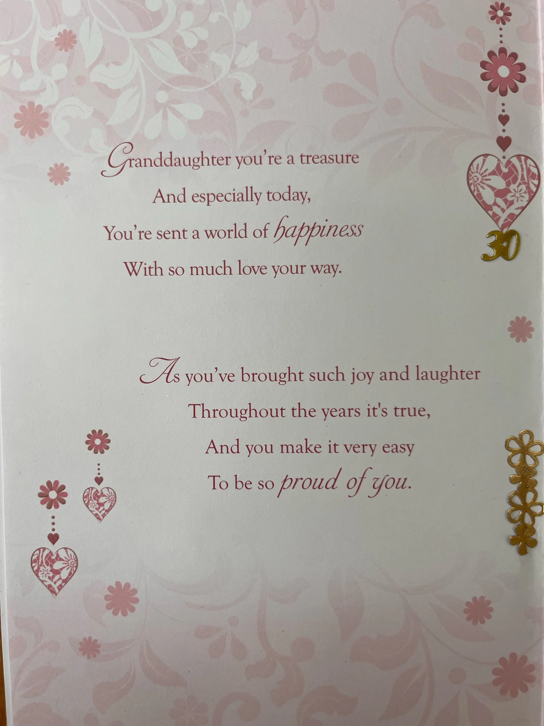 Granddaughter Categories: All Wife Goddaughter Cousin grandson Brother-in-Law Son-in-law Brother Auntie Dad Daughter-in-Law General Daughter Granddaughter Husband Nephew Sister Niece Son Uncle All / Granddaughter Granddaughter 30th birthday card £2.99 Extra Special Granddaughter 30th birthday card £7.99 Granddaughter 30th birthday card £2.99 Extra Special Granddaughter 30th birthday card £7.99 Granddaughter 30th birthday card £3.50 Granddaughter 30th birthday card £3.99 Special Granddaughter 30th birthday card £4.99