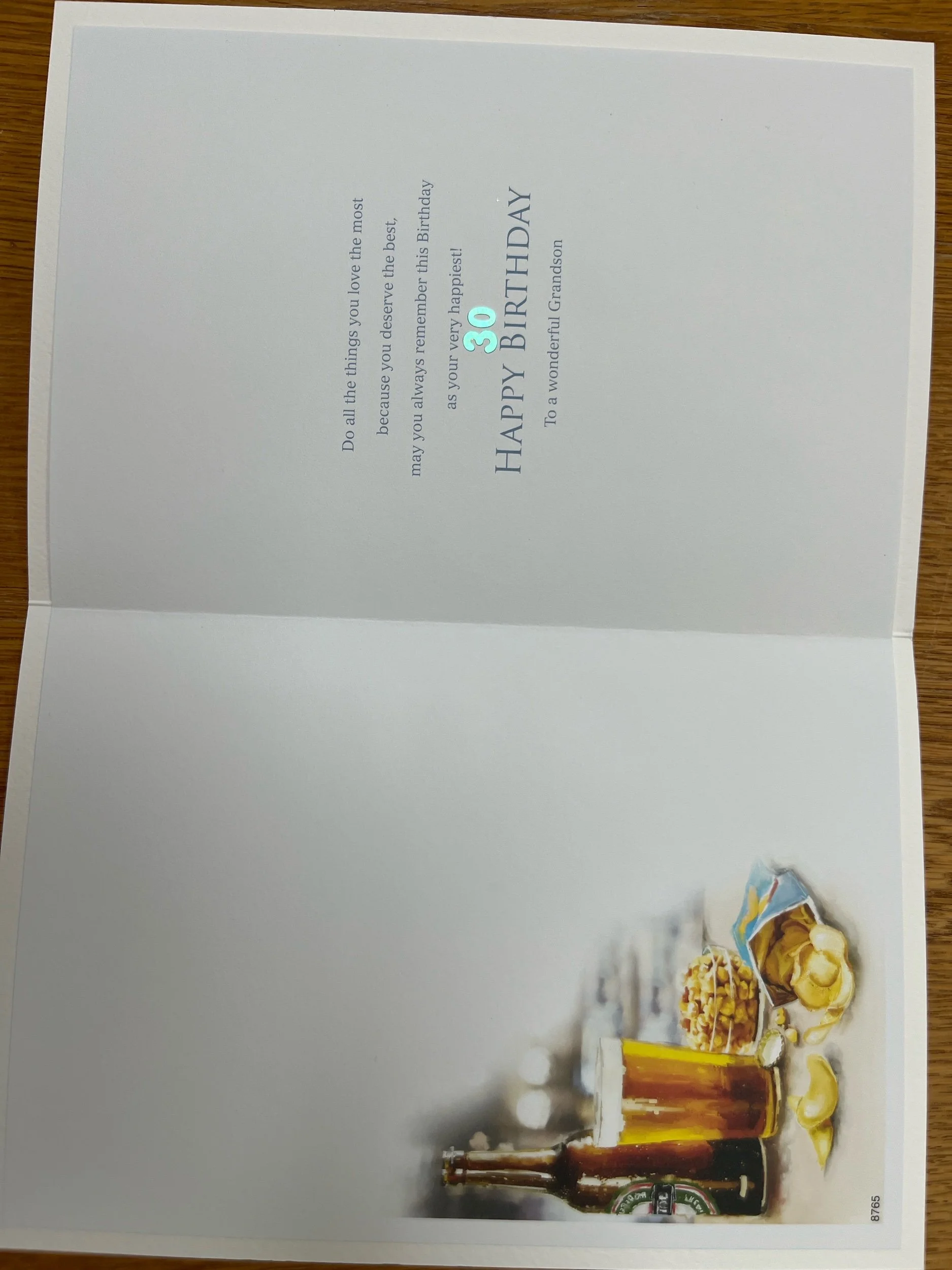 standard 1st or 2nd postage is necessary if mailing this Grandson’s 30th Birthday card