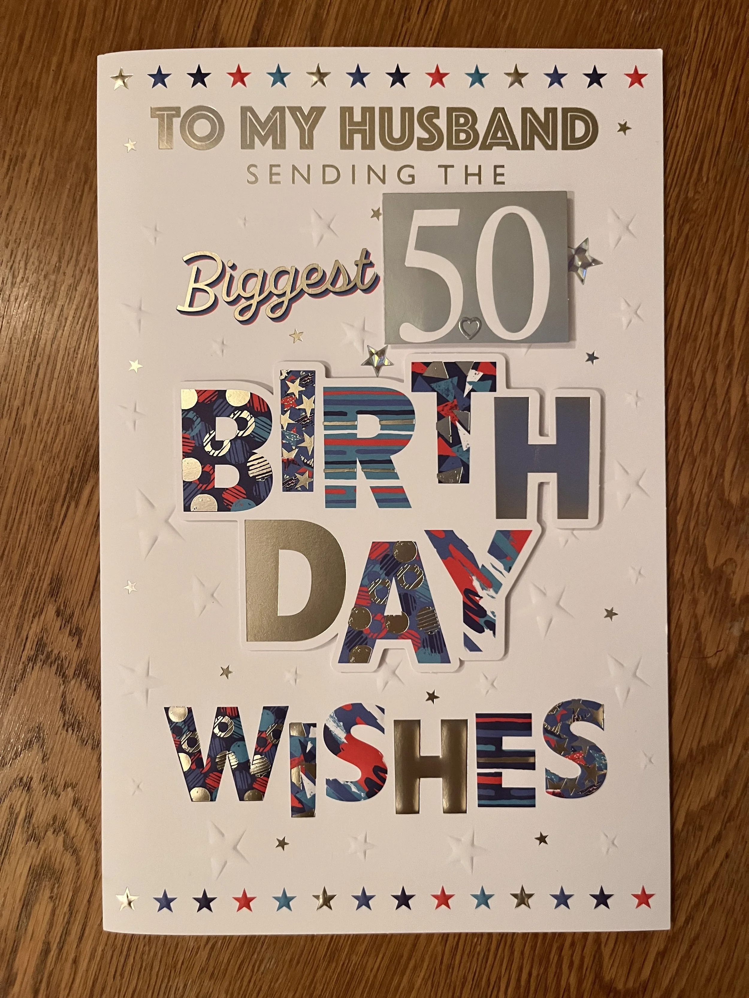 Husband Categories: All Partner Mam Granddaughter Cousin Grandson Auntie Brother Dad Brother-in-law Daughter Daughter-in-law General Humorous Husband Mum Nephew Niece Sister Sister-in-law Son Son-in-law Special Friend Uncle Wife All / Husband Husband 50th Birthday Card £2.99 Extra Special Husband 50th Birthday Card £7.99 Husband 50th Birthday Card £3.99
