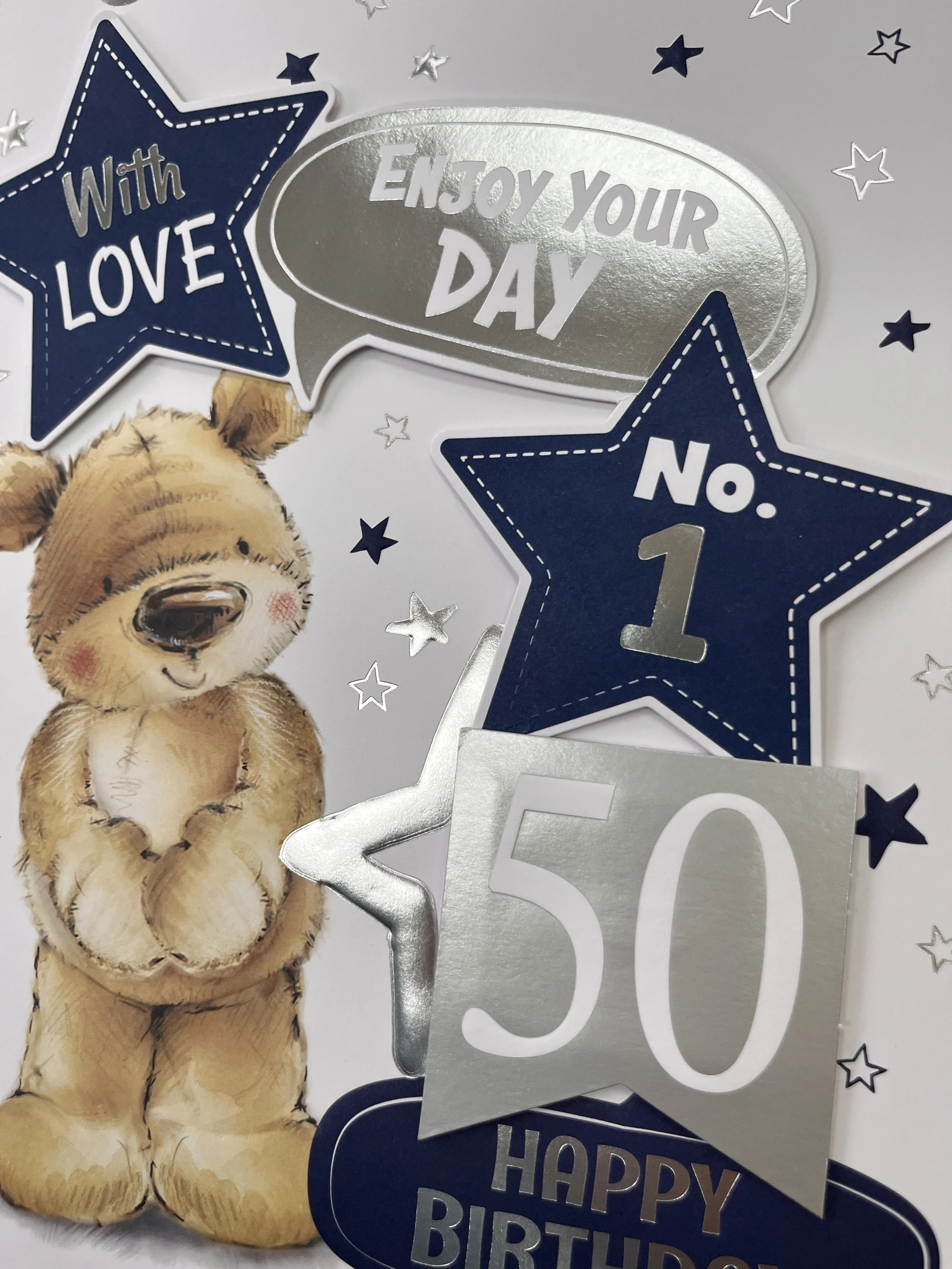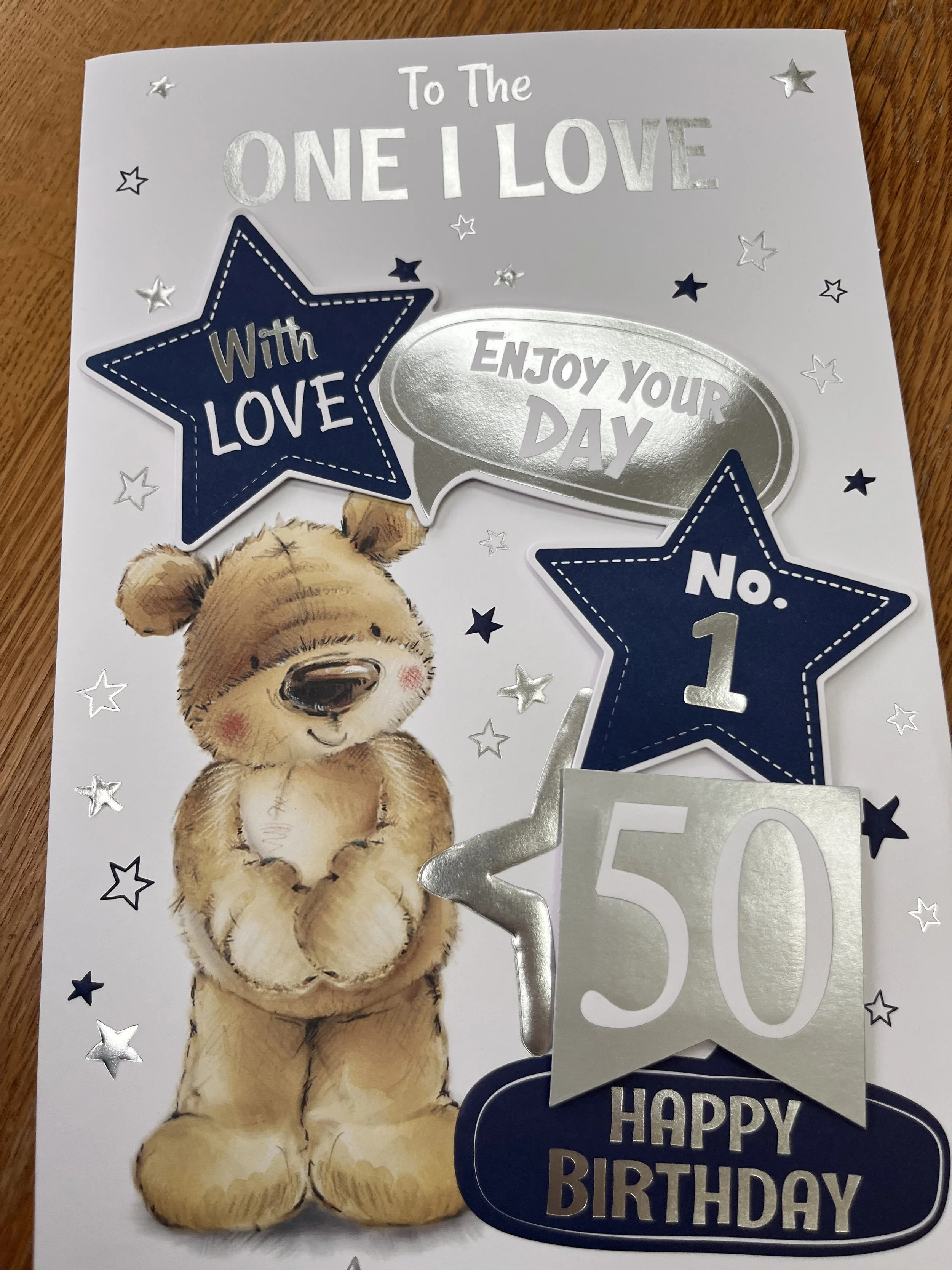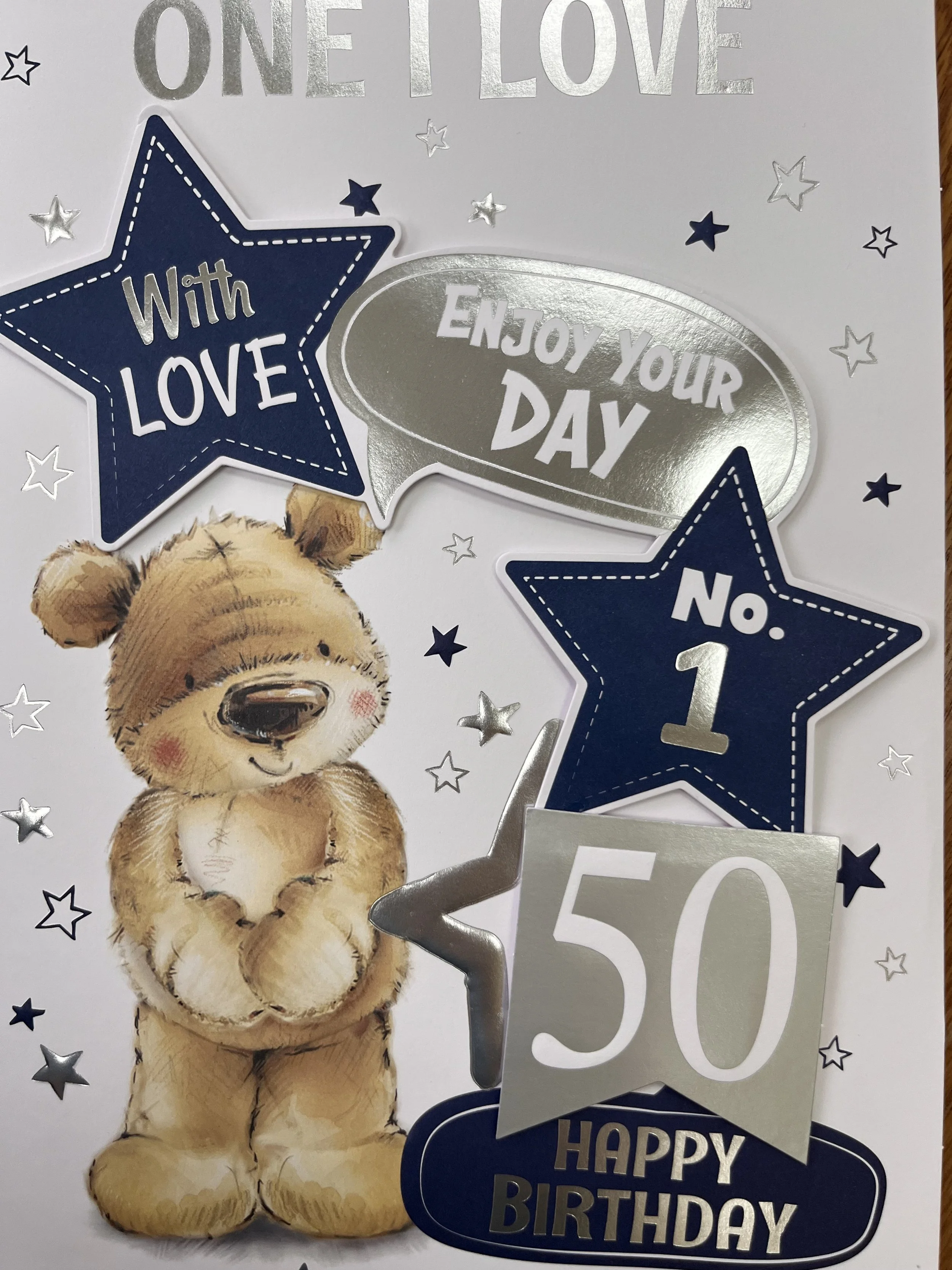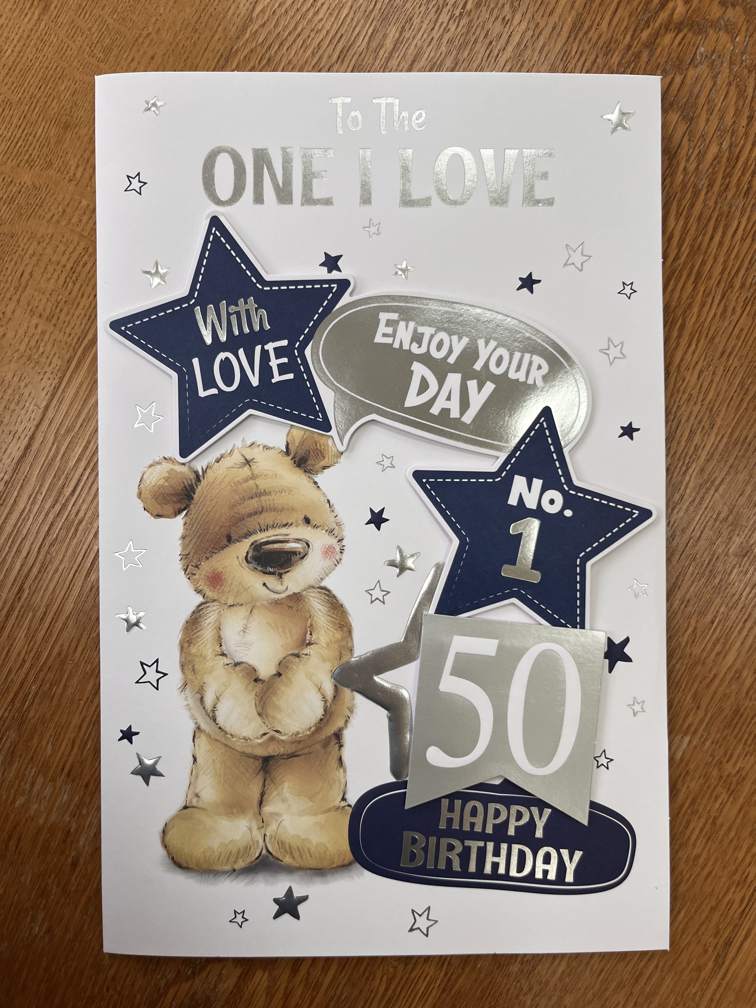 One I Love 50th birthday card is a special book type of design, that is hand -finished with a sparkly black 3D 50 today attachment , a 3D butterfly embellishment, effective foilinging, flittering and inside 7 pages of "Loving Words" on full colour illustrated inserts with a butterfly and black and white attachments on the last page - please see all photos 😍