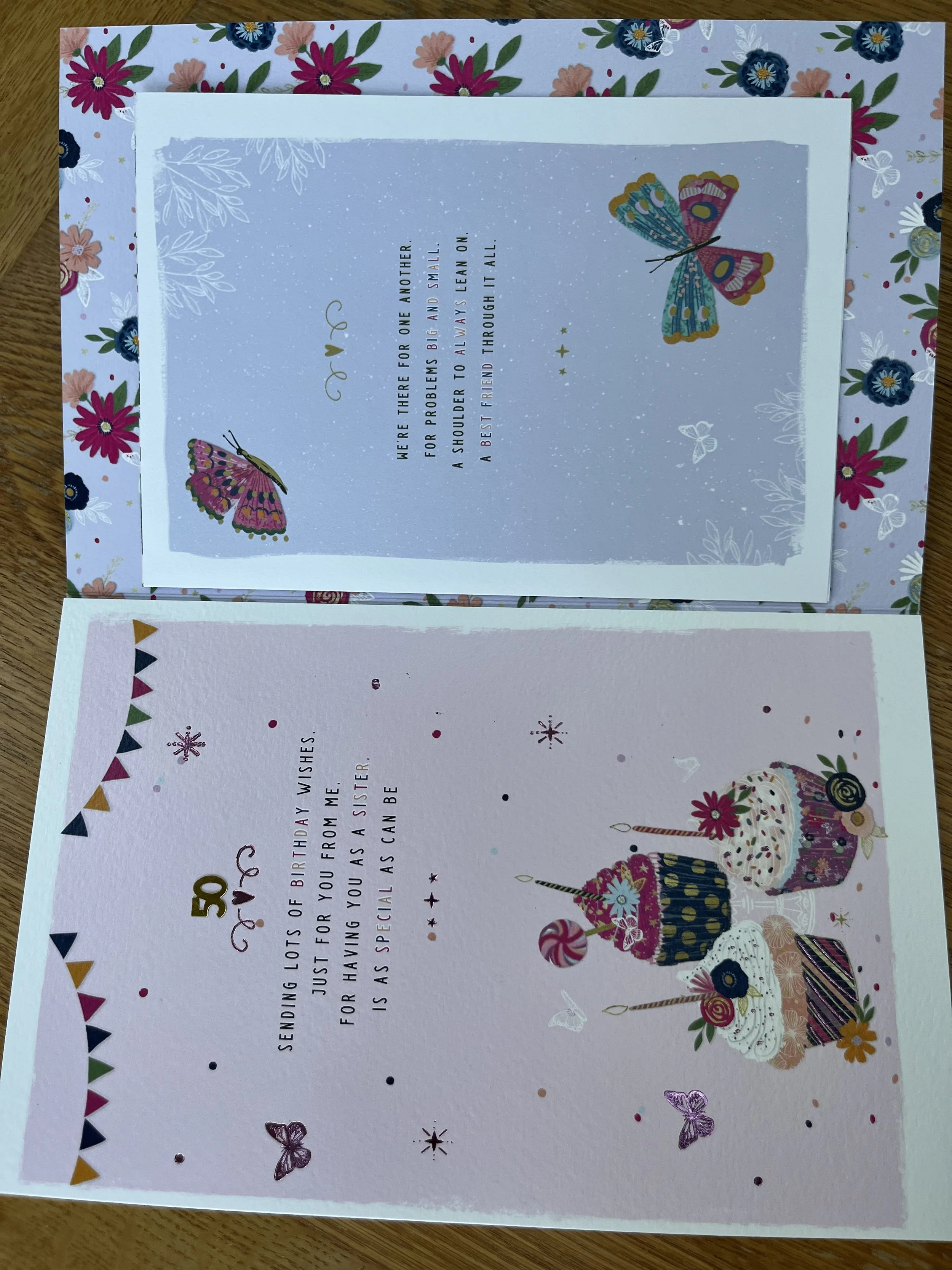 Sister 50th Birthday Card is an extra Special HAND FINISHED book type of design that features gold coloured 3D heart shaped embellishments , a shaped 3d sparkly pink attachment, effective foil, embossing and inside are 7 pages of Loving Words on full colour illustrated inserts with a crinkle cut 50th verses attachment on the 2nd to last page - please see all photos provided- 😊thank you