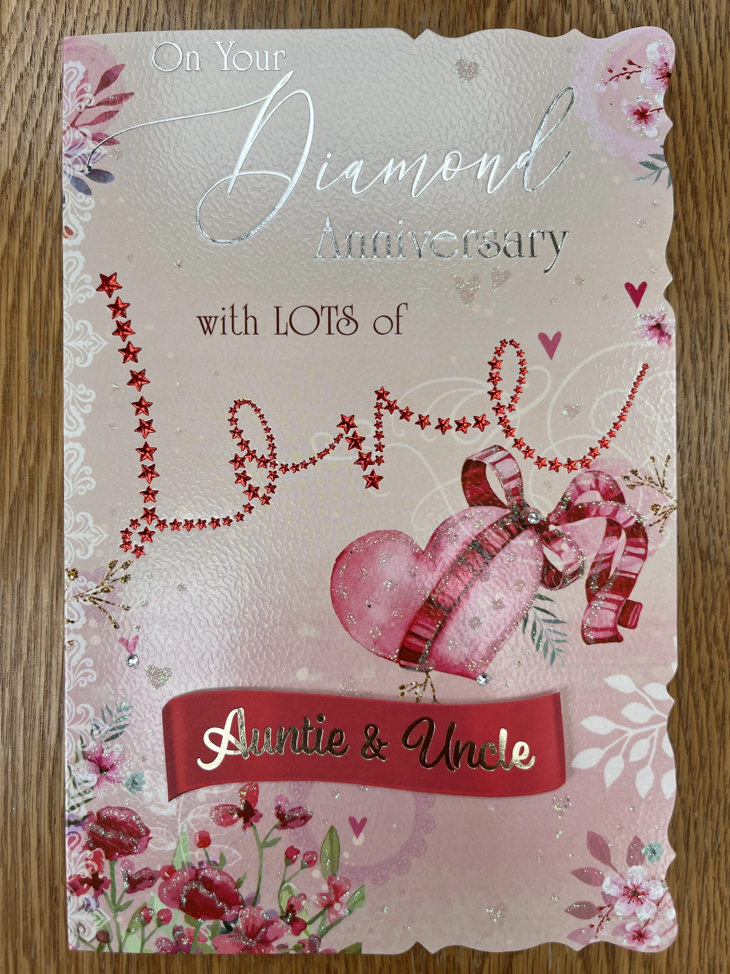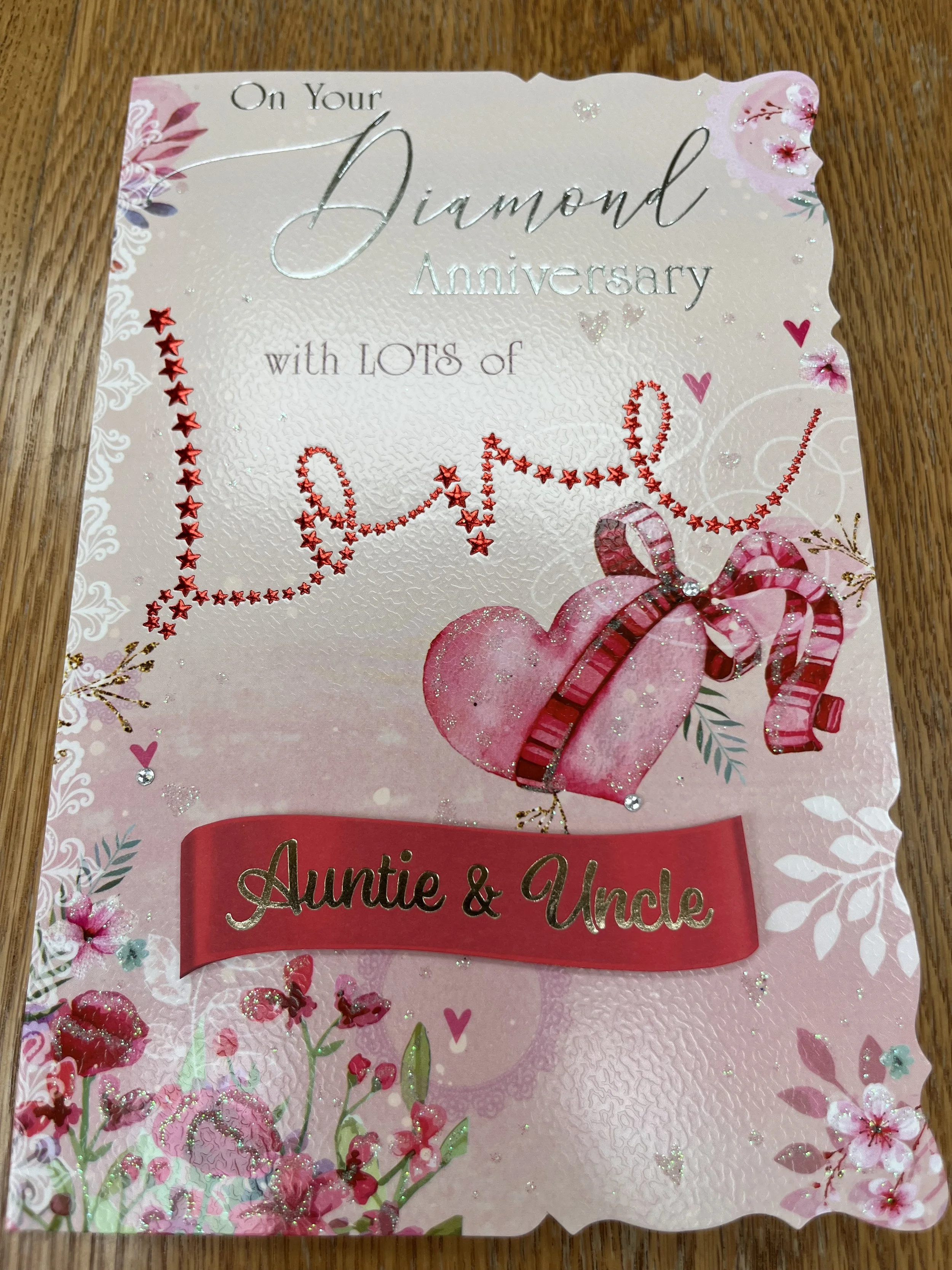 This Auntie and Uncle Diamond Anniversary card requires standard postage