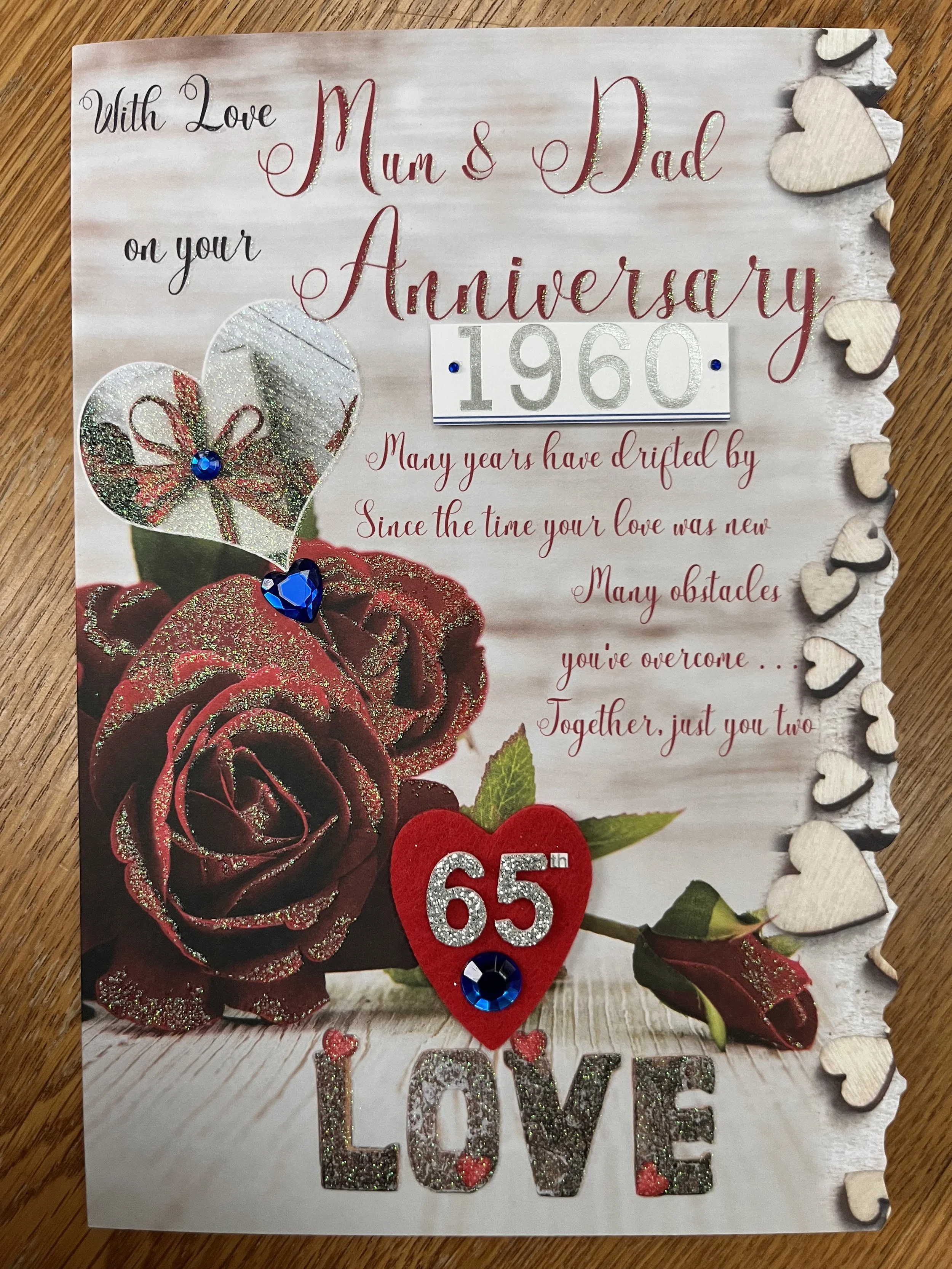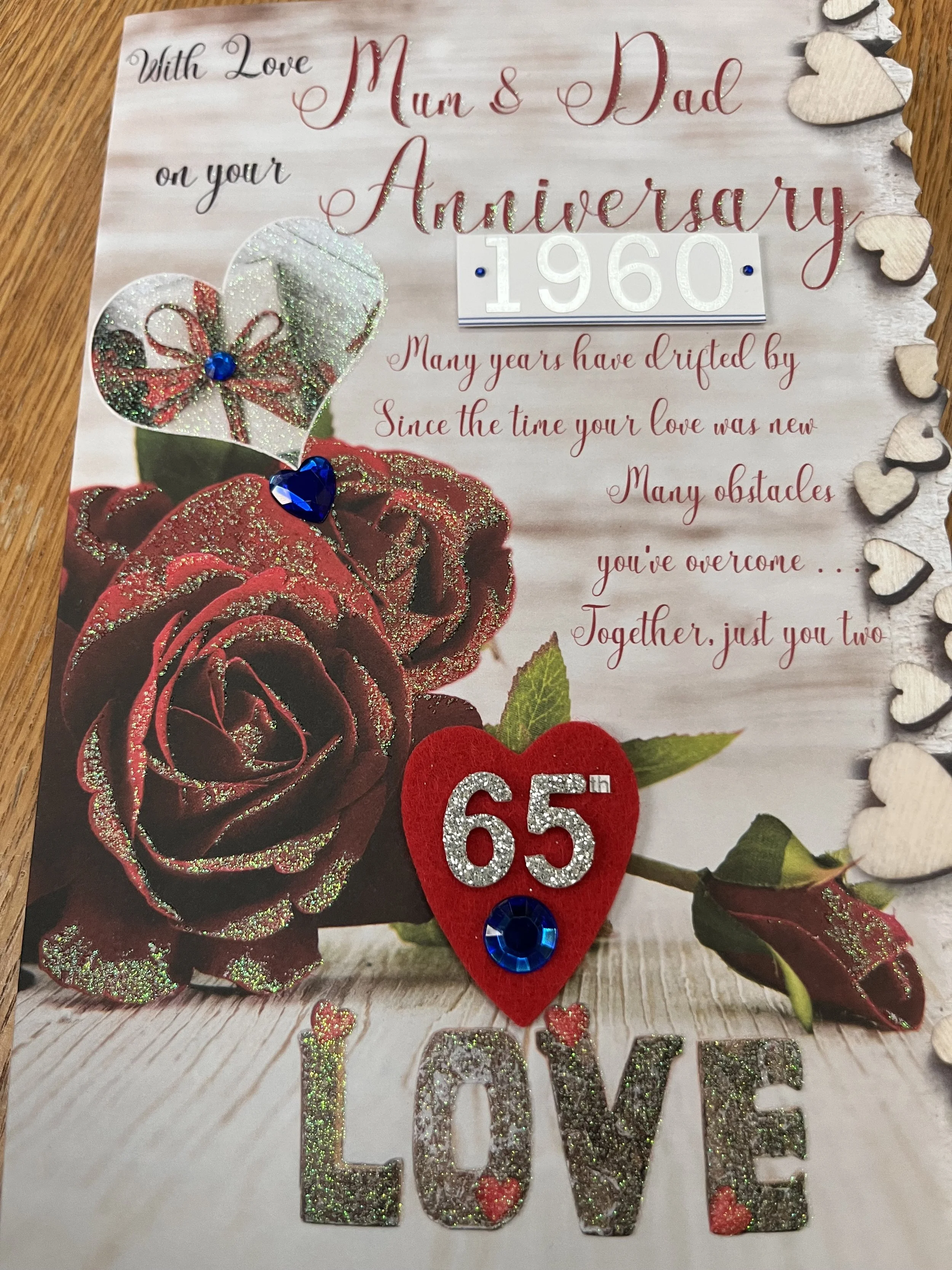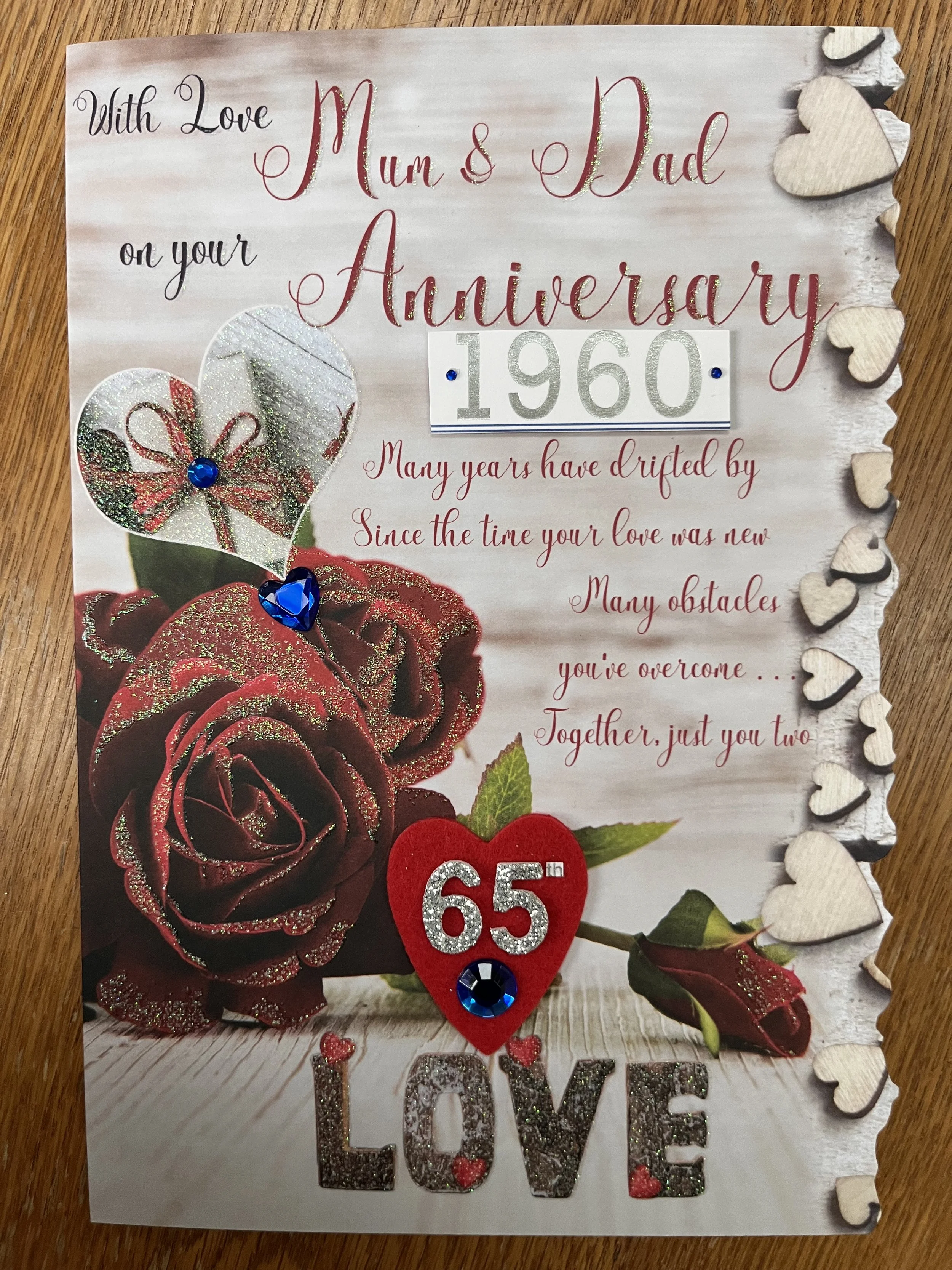 Mum and Dad 65th Anniversary card is a LARGE card approximate size 30 x 20cm