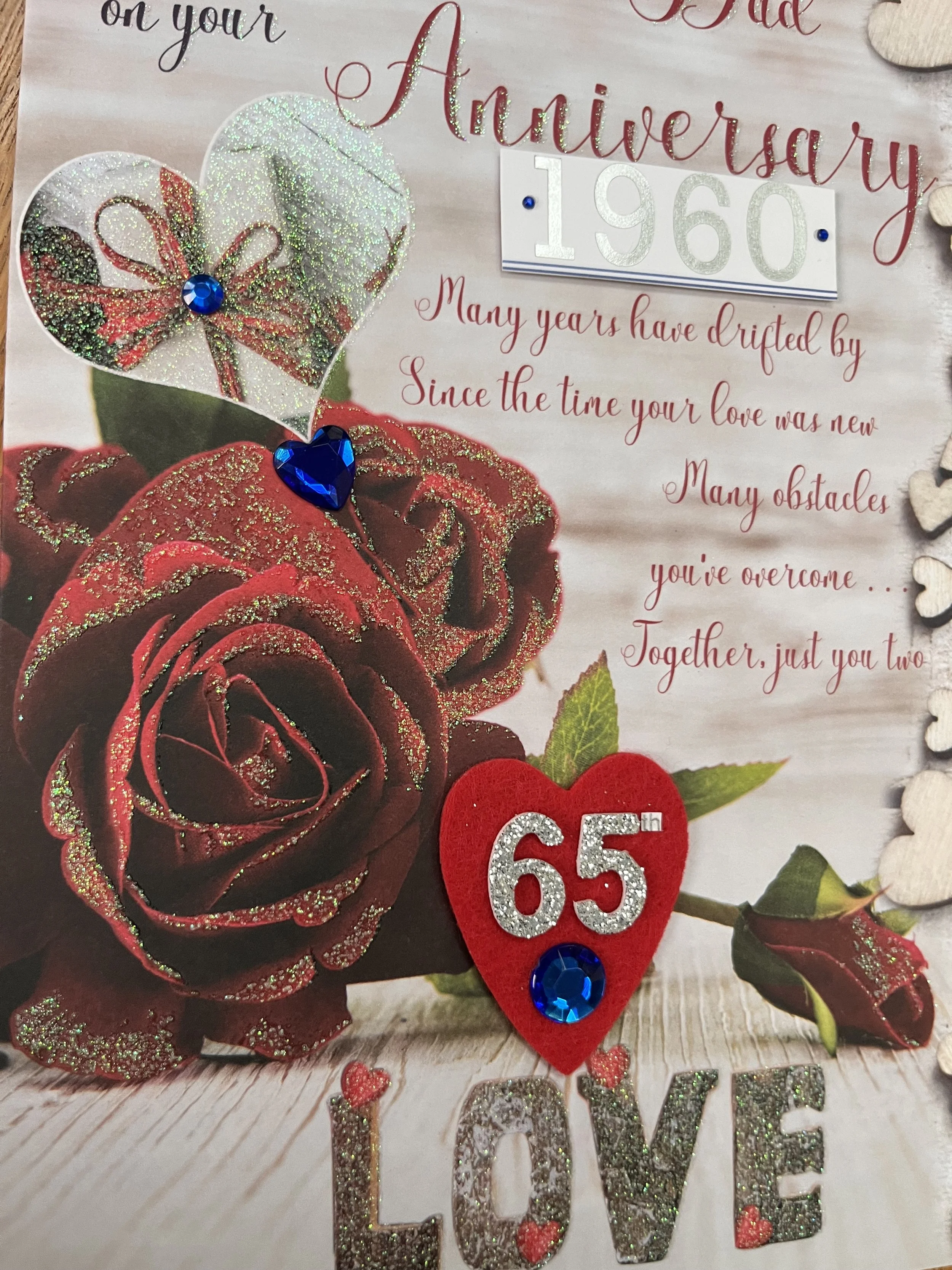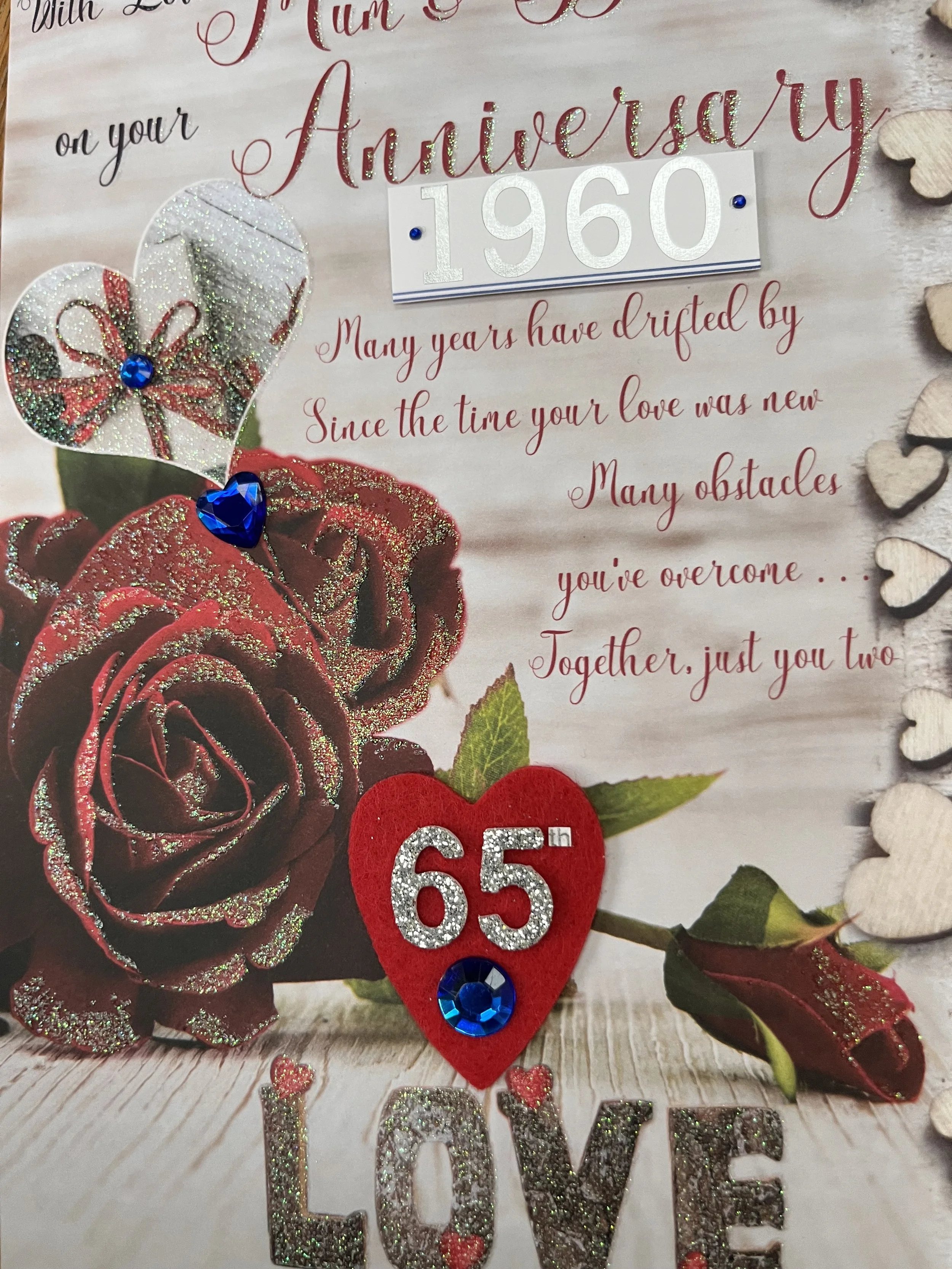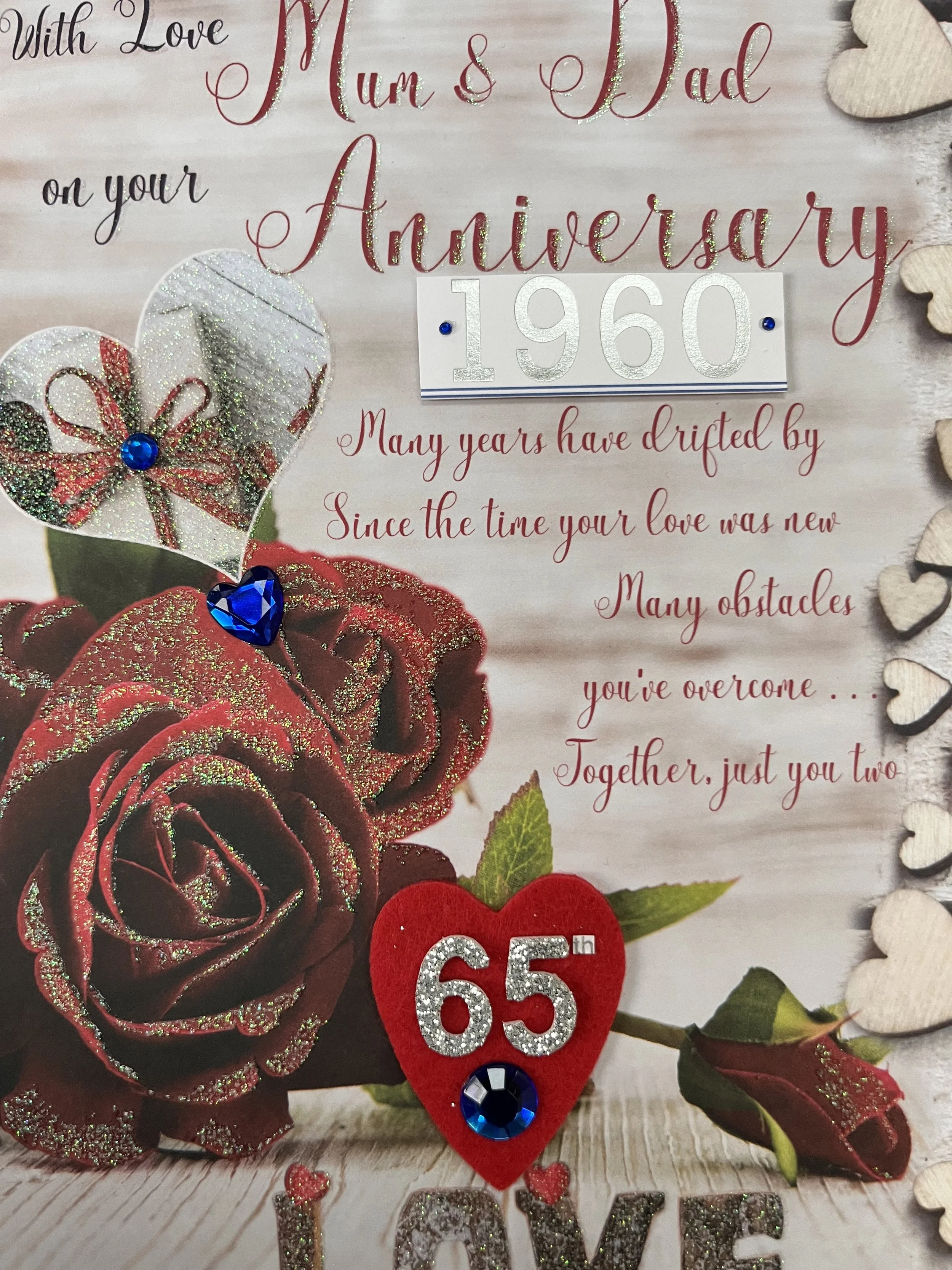 Mum and Dad 65th Anniversary card is a LARGE card approximate size 30 x 20cm