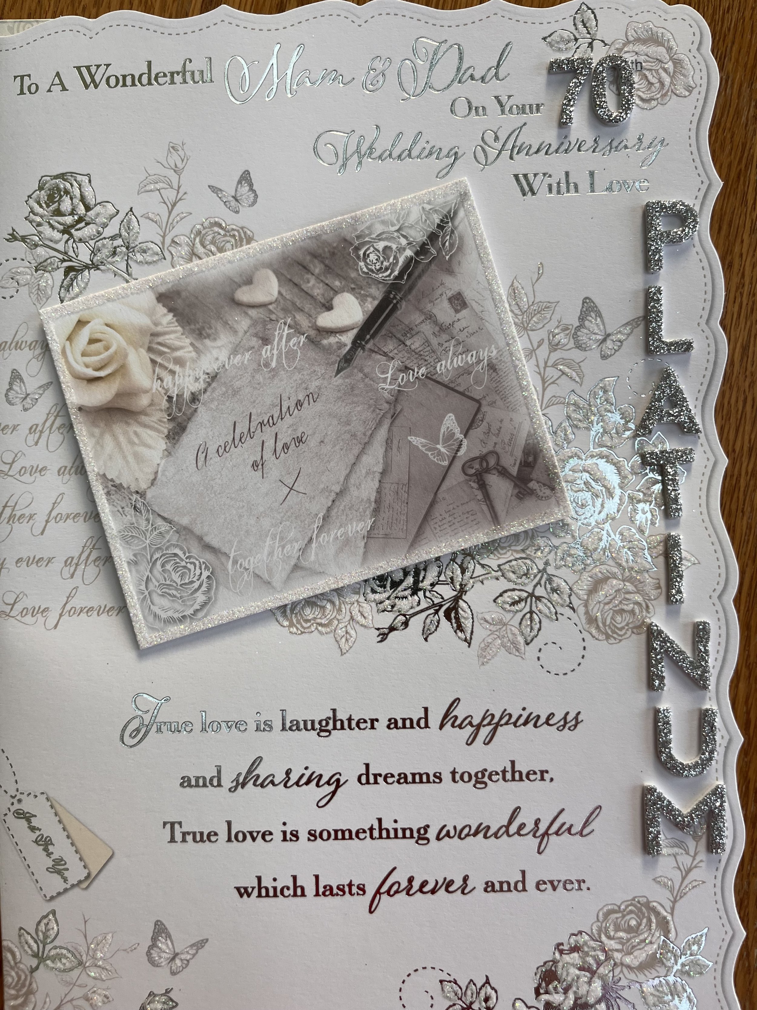 70th / Platinum Categories: All Mam and Dad Grandparents General Mum & Dad 70th / Platinum All | Mam and Dad | Grandparents | General | Mum & Dad | Platinum anniversary card £2.99 Platinum anniversary card £3.99 70th Anniversary card £2.99 Platinum Wedding anniversary card £2.50 70th anniversary card £2.99 Platinum anniversary card £2.99 Extra Special Mam and Dad 70th Wedding anniversary card £9.99 Mum and Dad 70th anniversary card £5.99 Mum and Dad 70th anniversary card £3.99 Mum and Dad 70th anniversary card £4.99 Mum and Dad Platinum Wedding anniversary card £4.99 Extra Special Mum and Dad 70th anniversary card £9.99 Mum and Dad 70th anniversary card £3.99 Sold Out Mum and Dad Platinum anniversary card £3.99 Grandparents Platinum anniversary card £3.99 Sold Out Grandparents 70th anniversary card £3.99 Grandparents 70th anniversary card £3.99 Sold Out Grandparents Platinum anniversary card £3.99