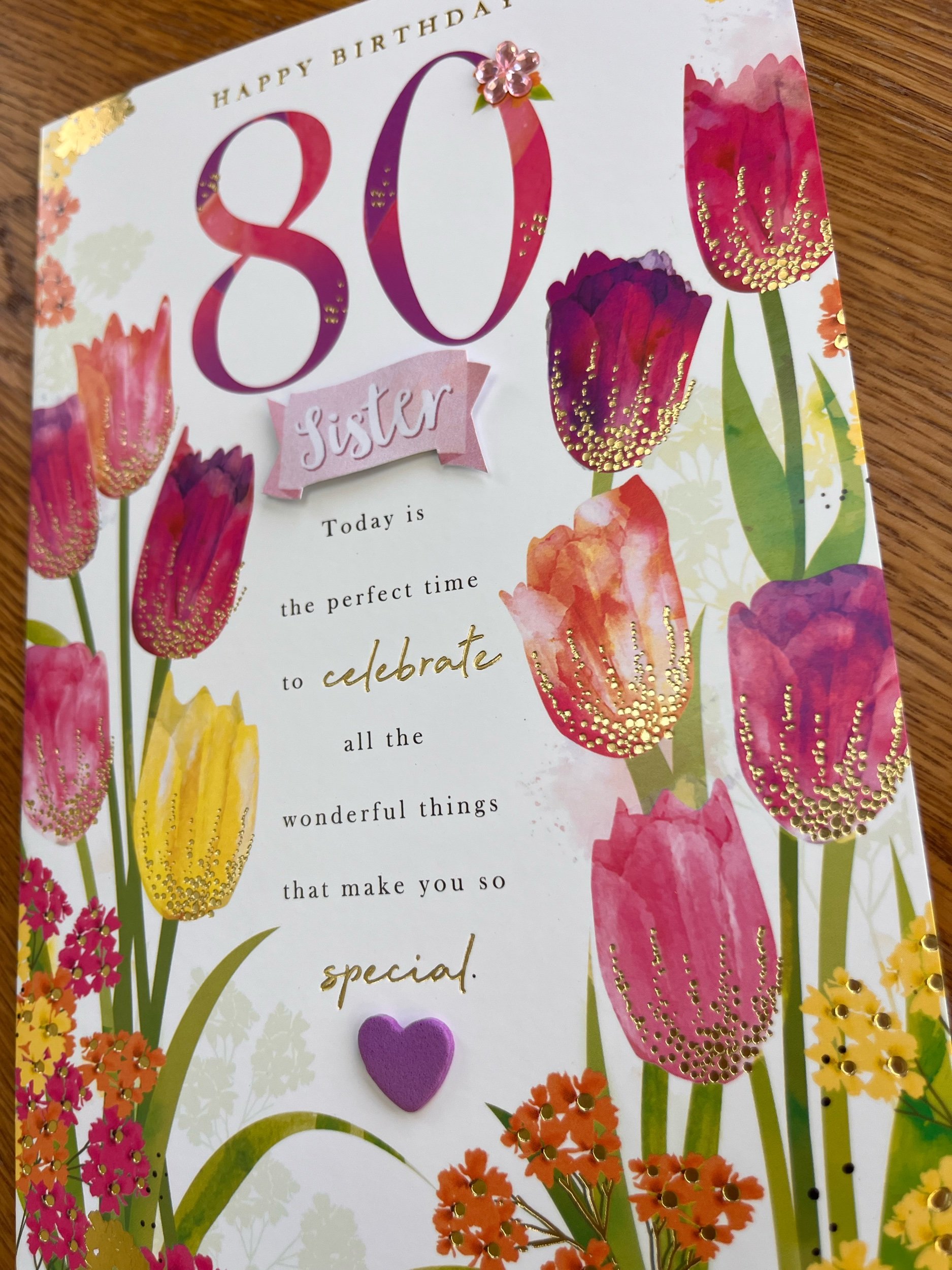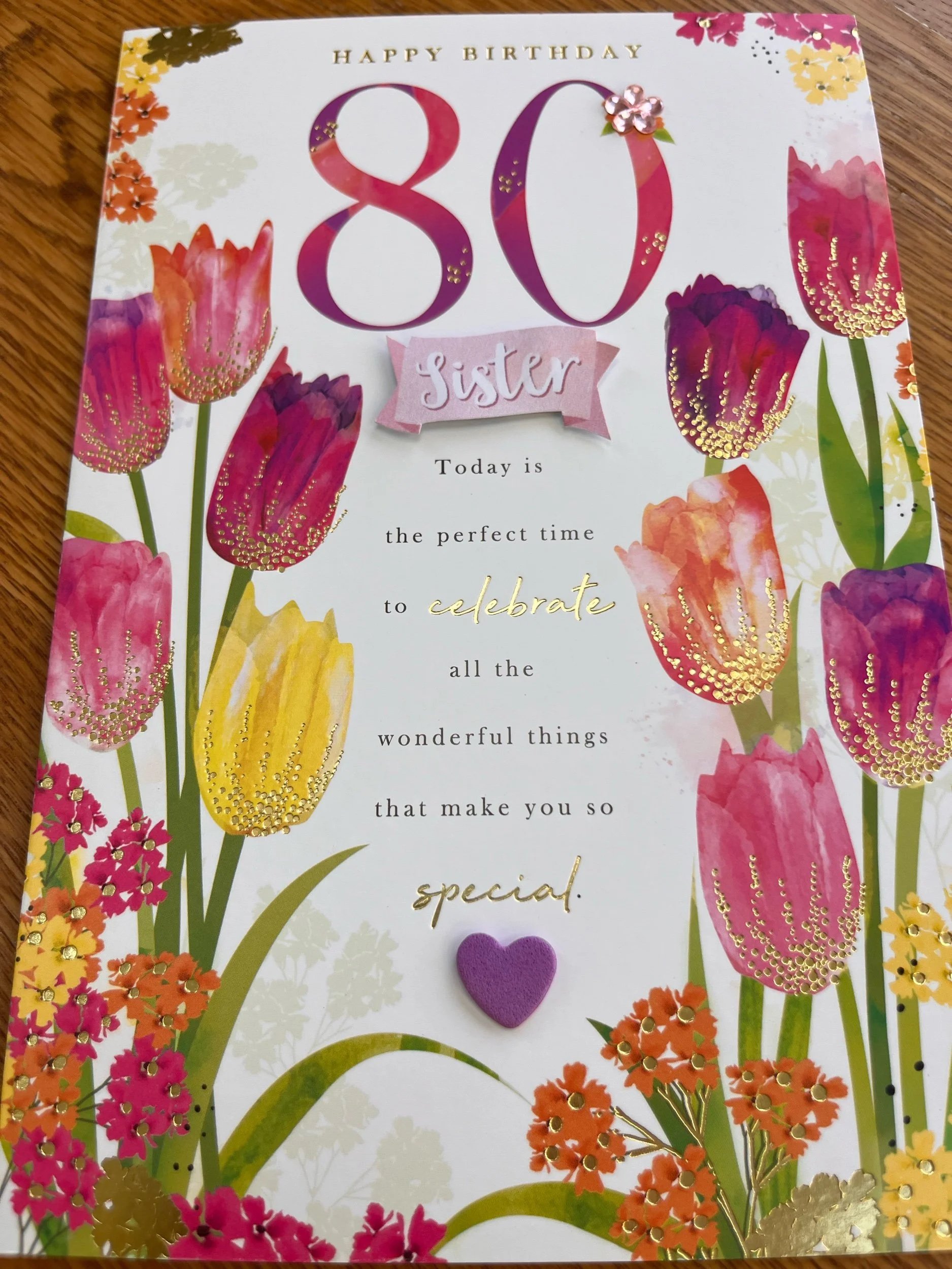 Special card for a Special Sisters 80th is a LARGE card approximate dimensions 30 x 19cm
