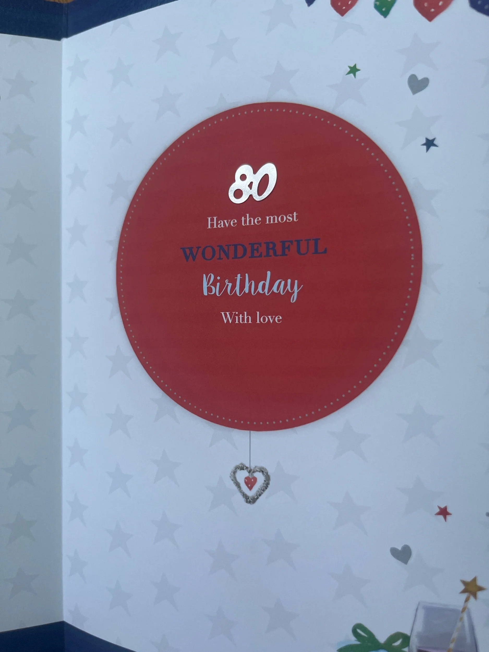 Husband 80th birthday card approximate dimensions 23 x 15 cm