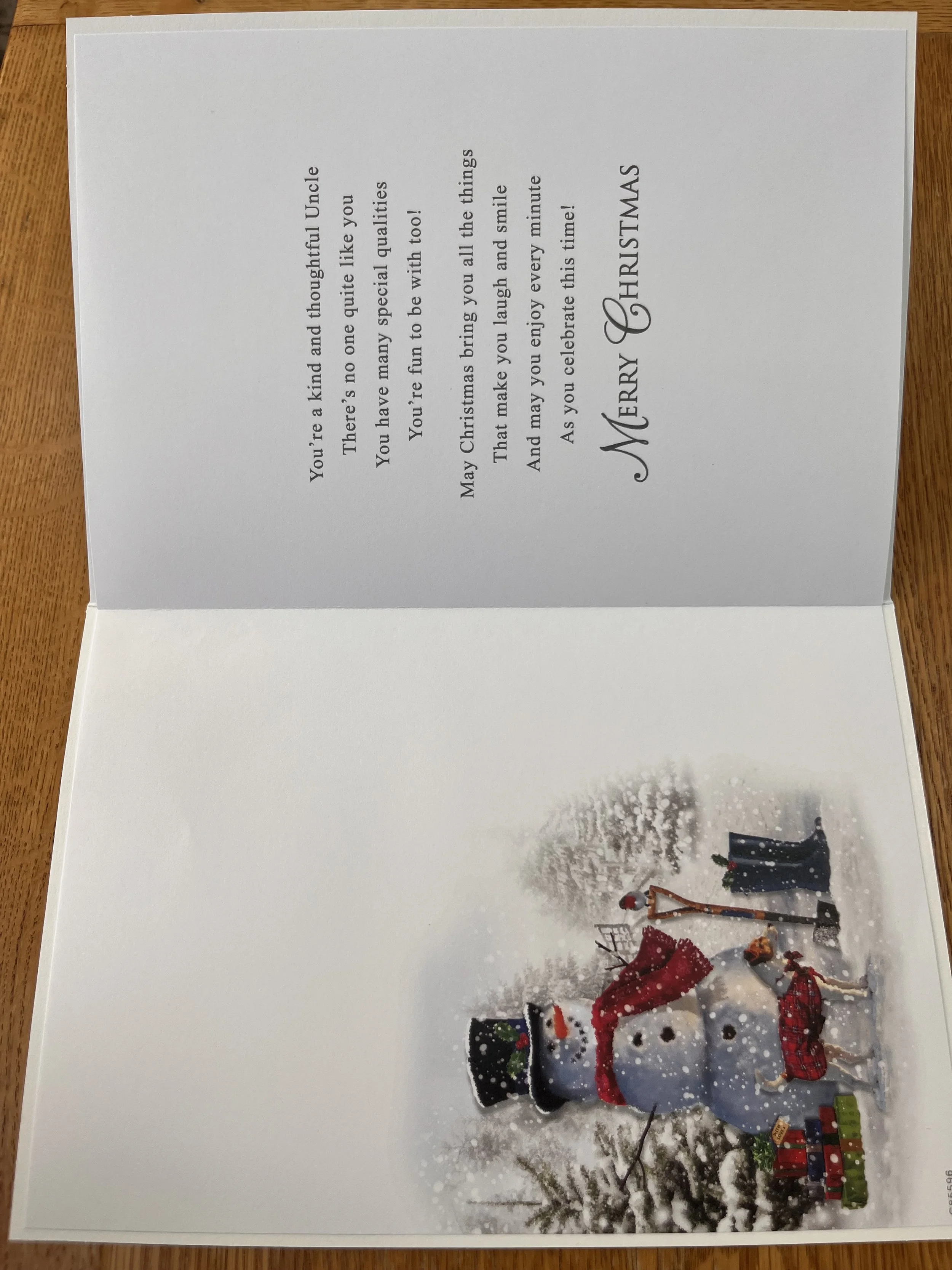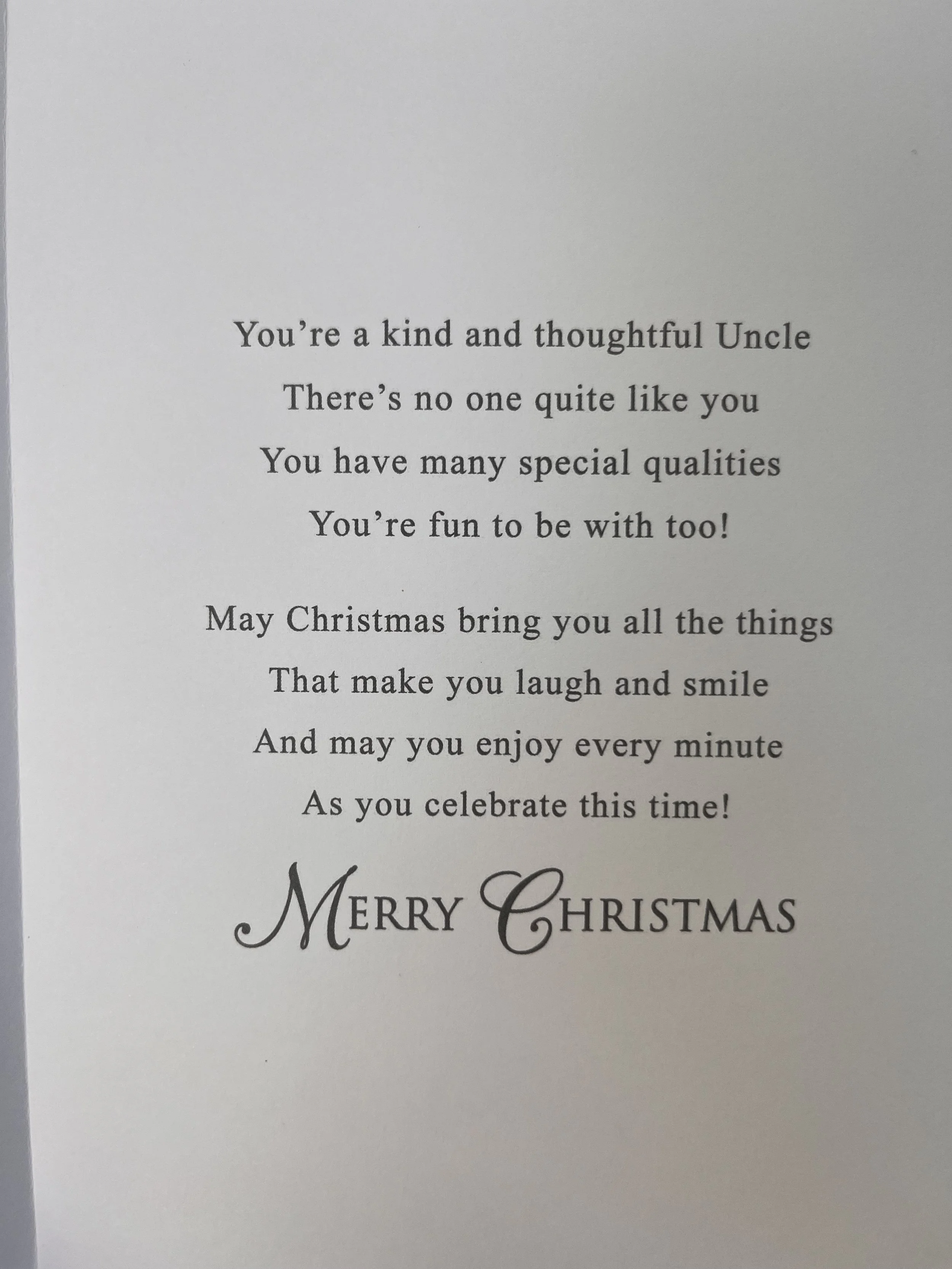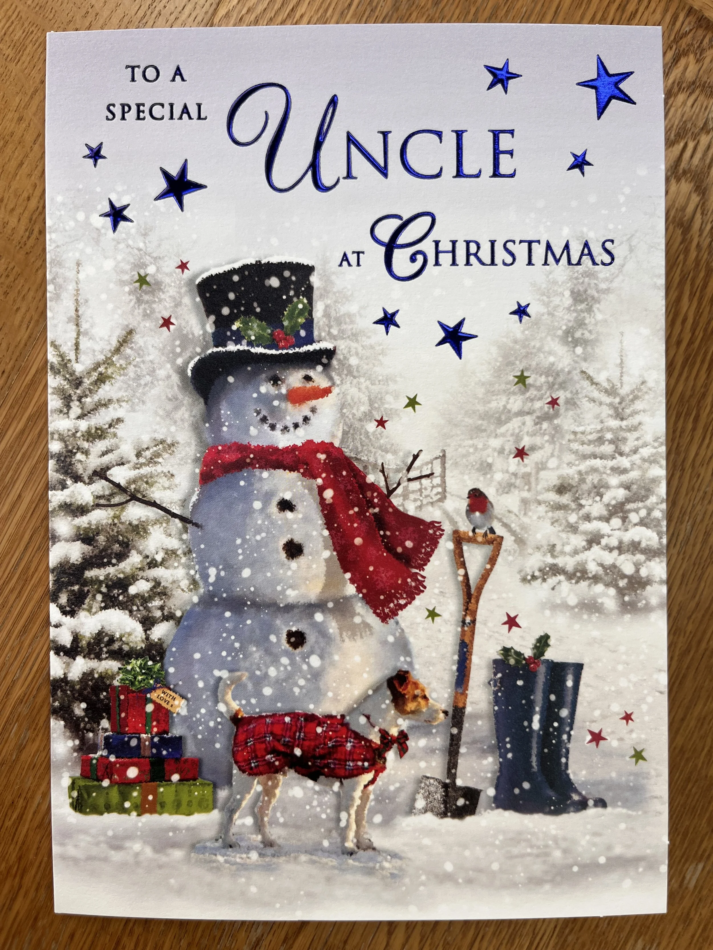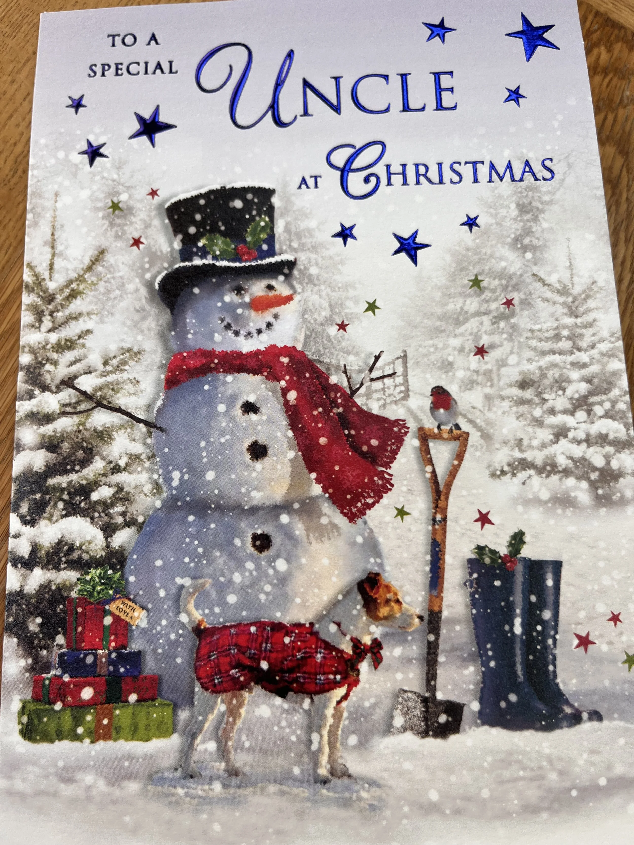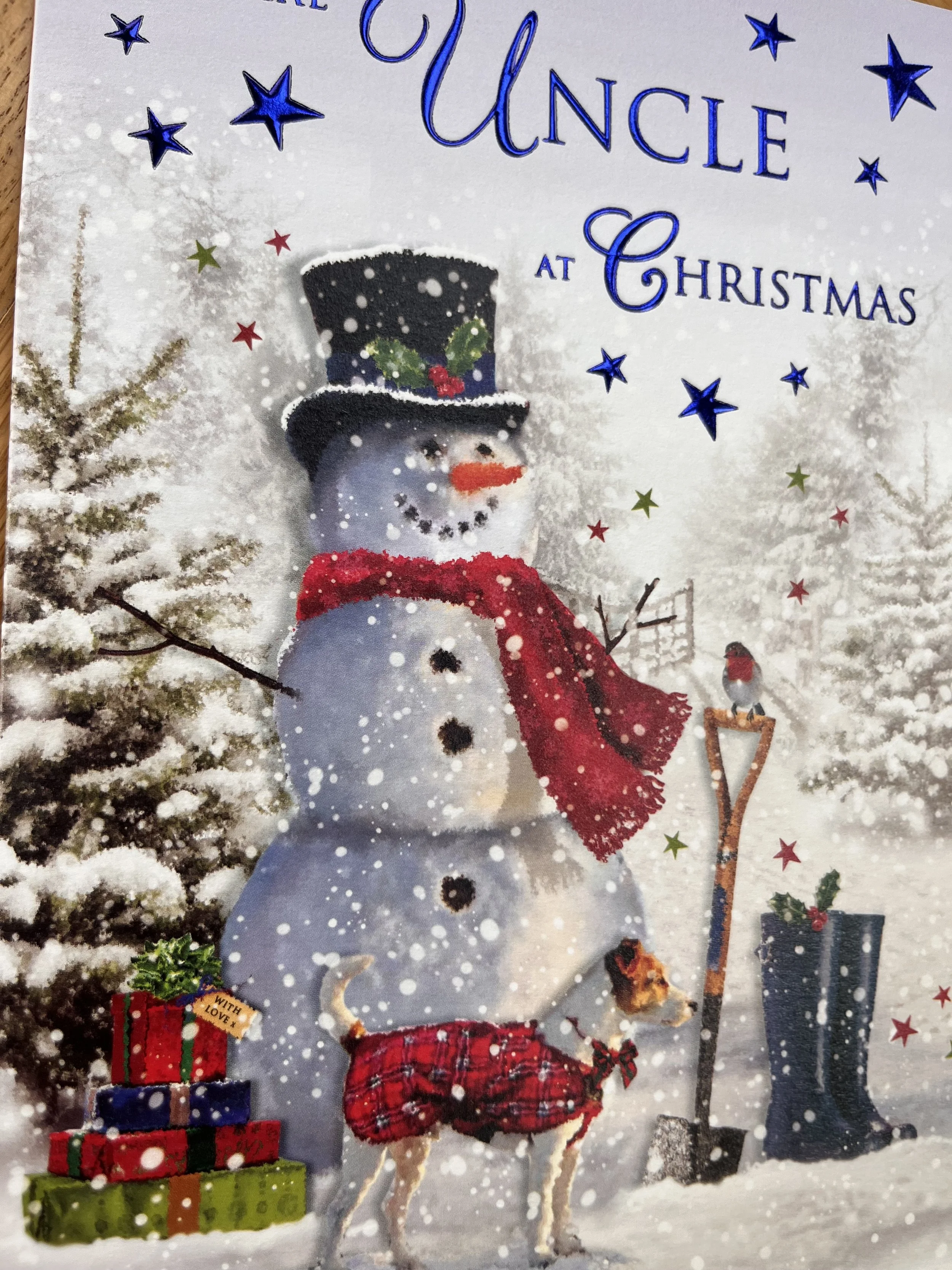 uncle Christmas Card design features foiling and a festive colour illustrated insert inside