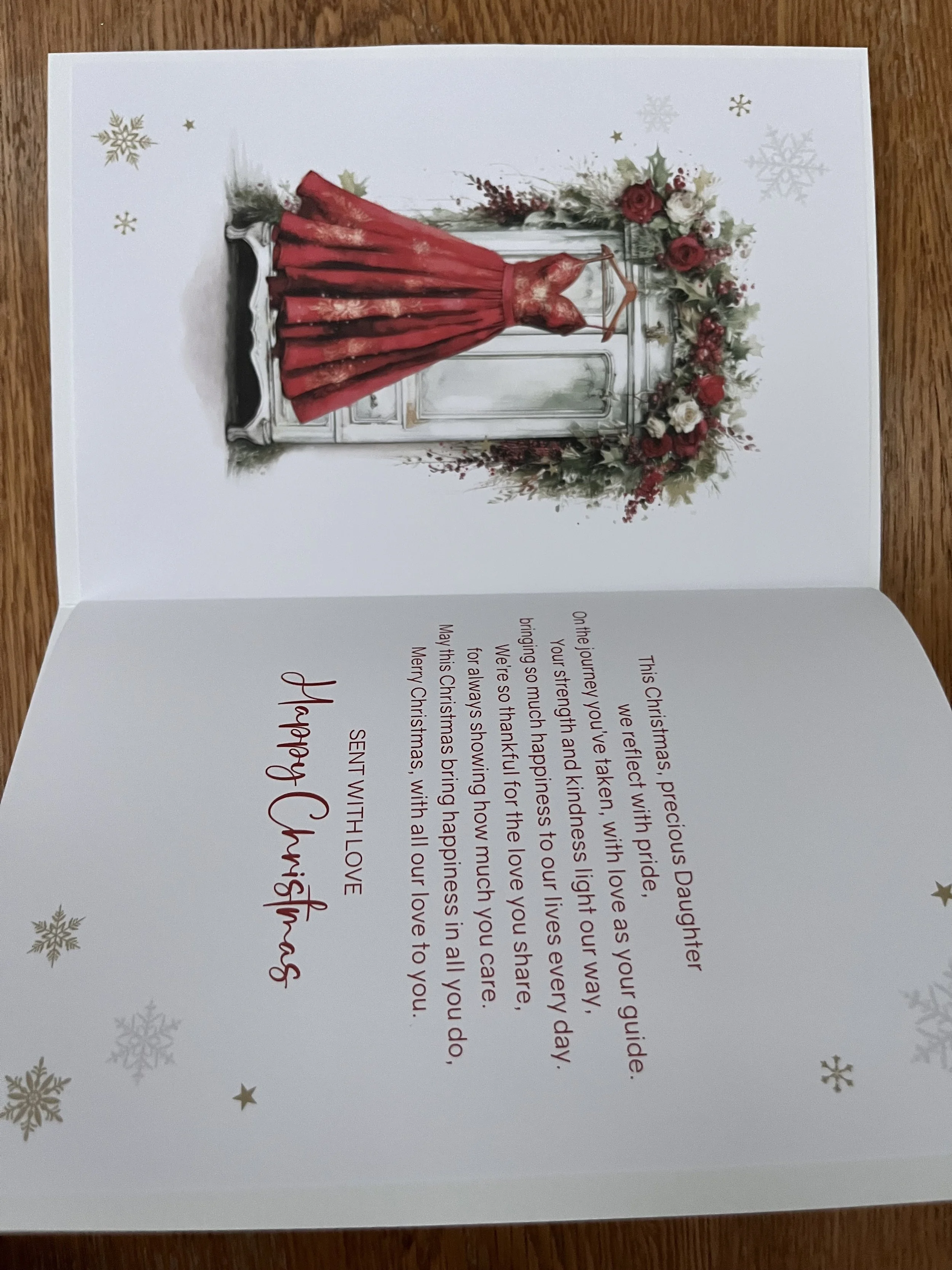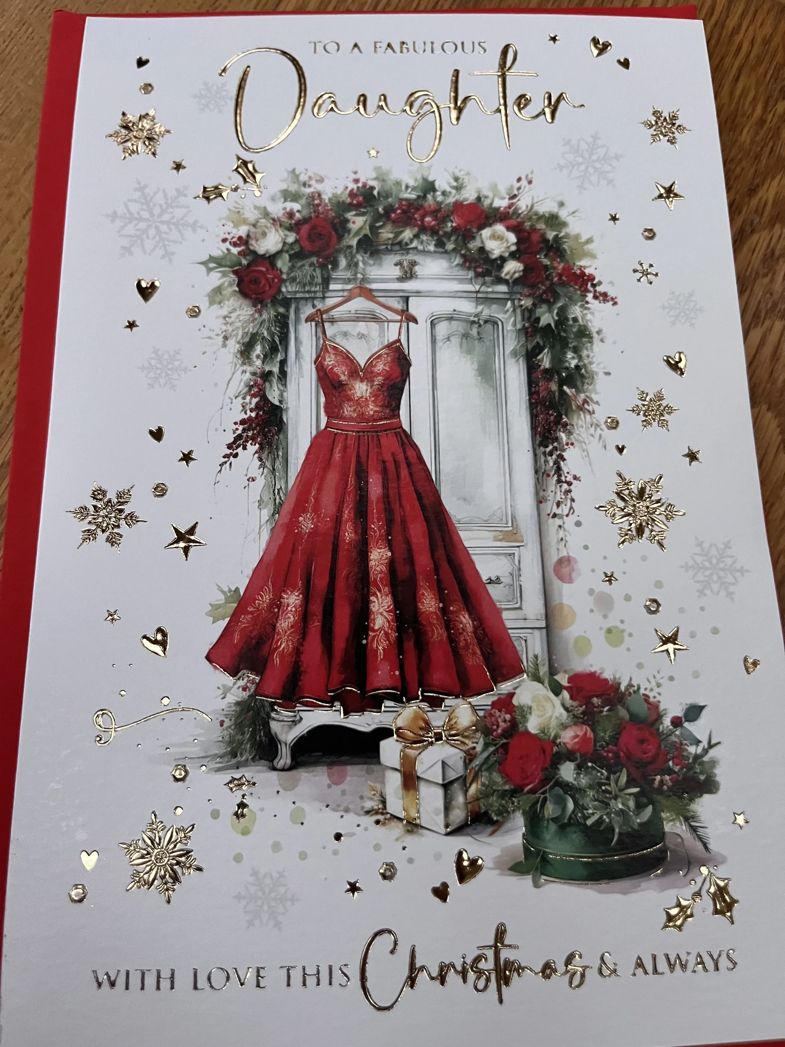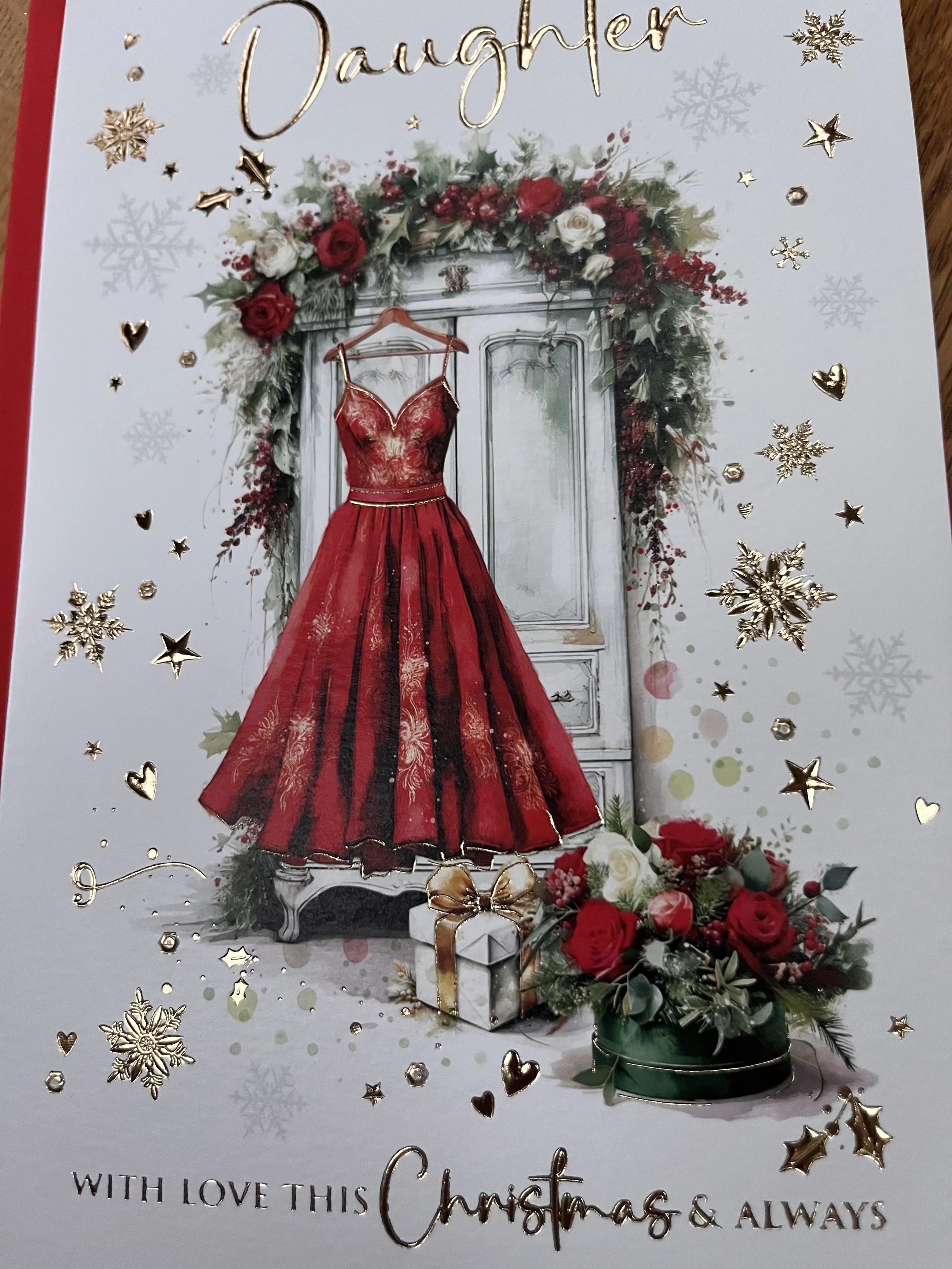 Special Daughter Christmas Card design has very effective gold foil on a fab design and inside a full colour illustrated insert with such heartfelt words