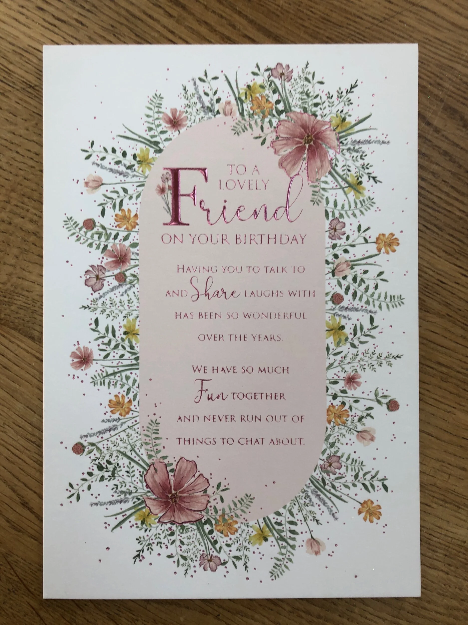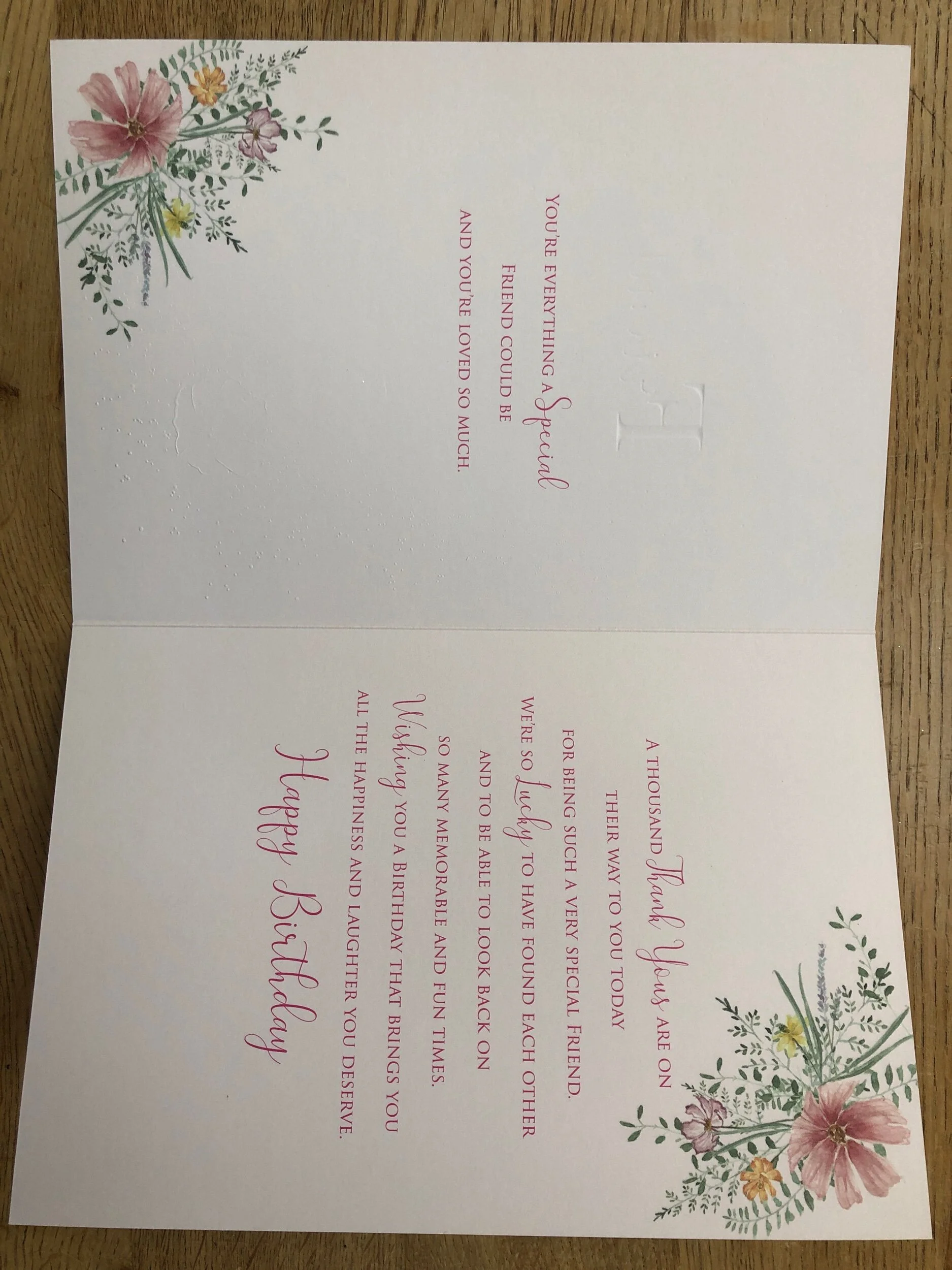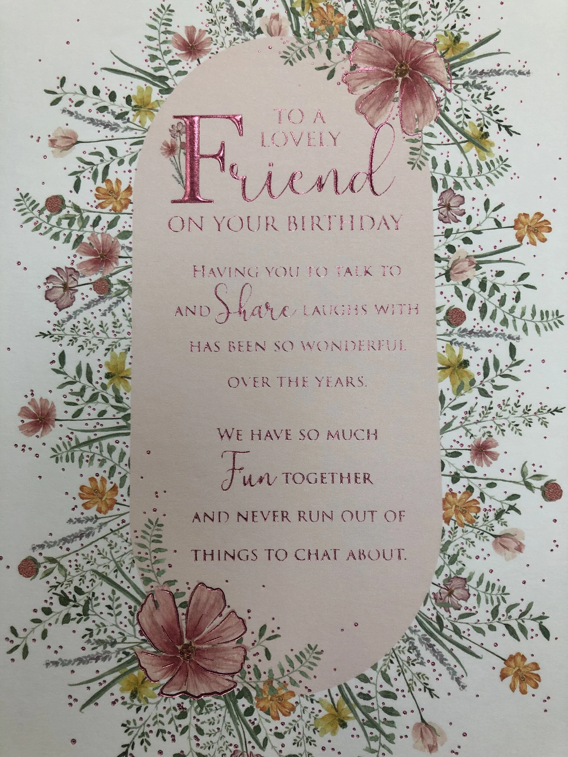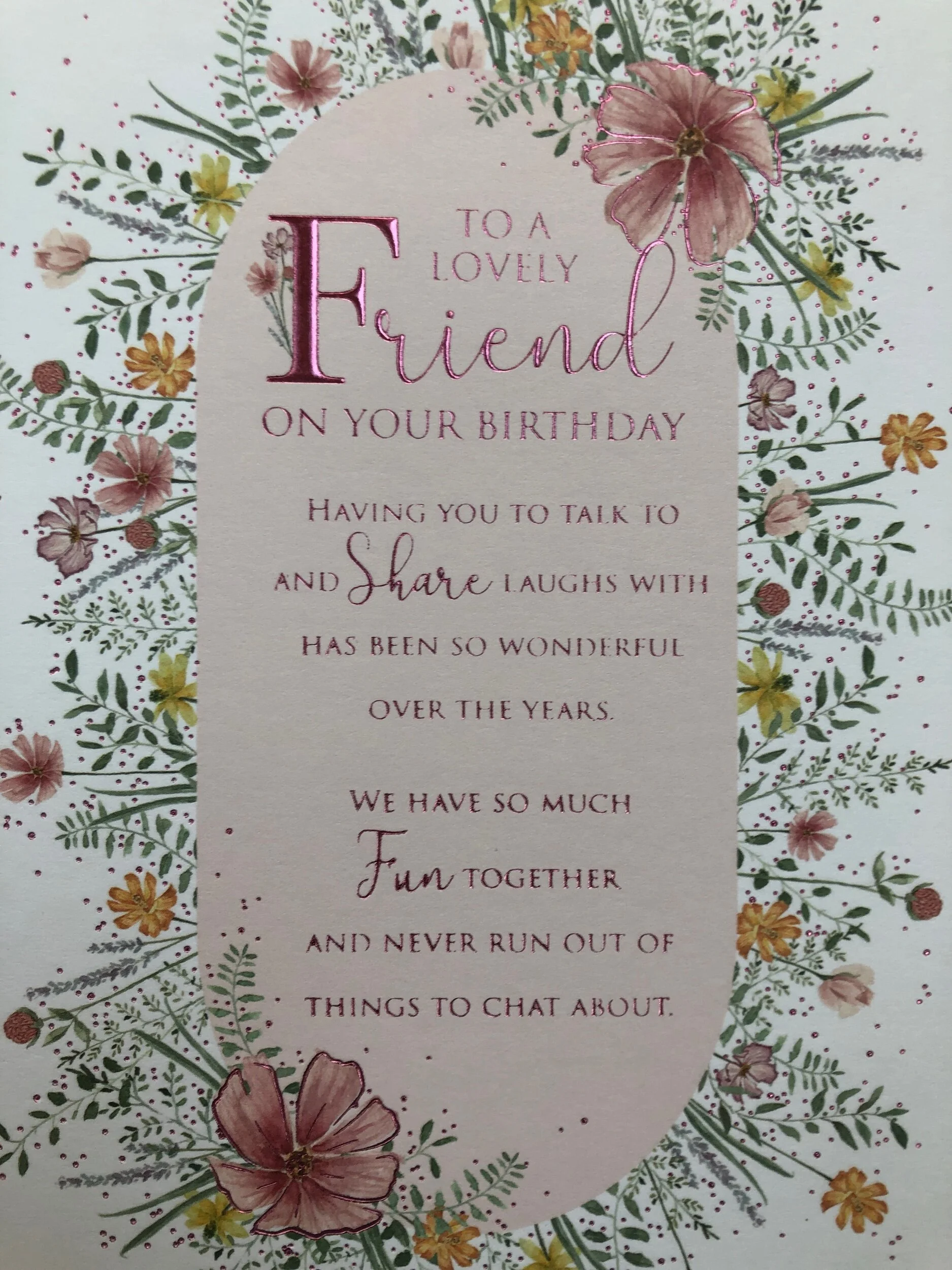 Friend Birthday card Gin design features very effective gold foil on a fab pink gin design and inside full colour illustrations with verse