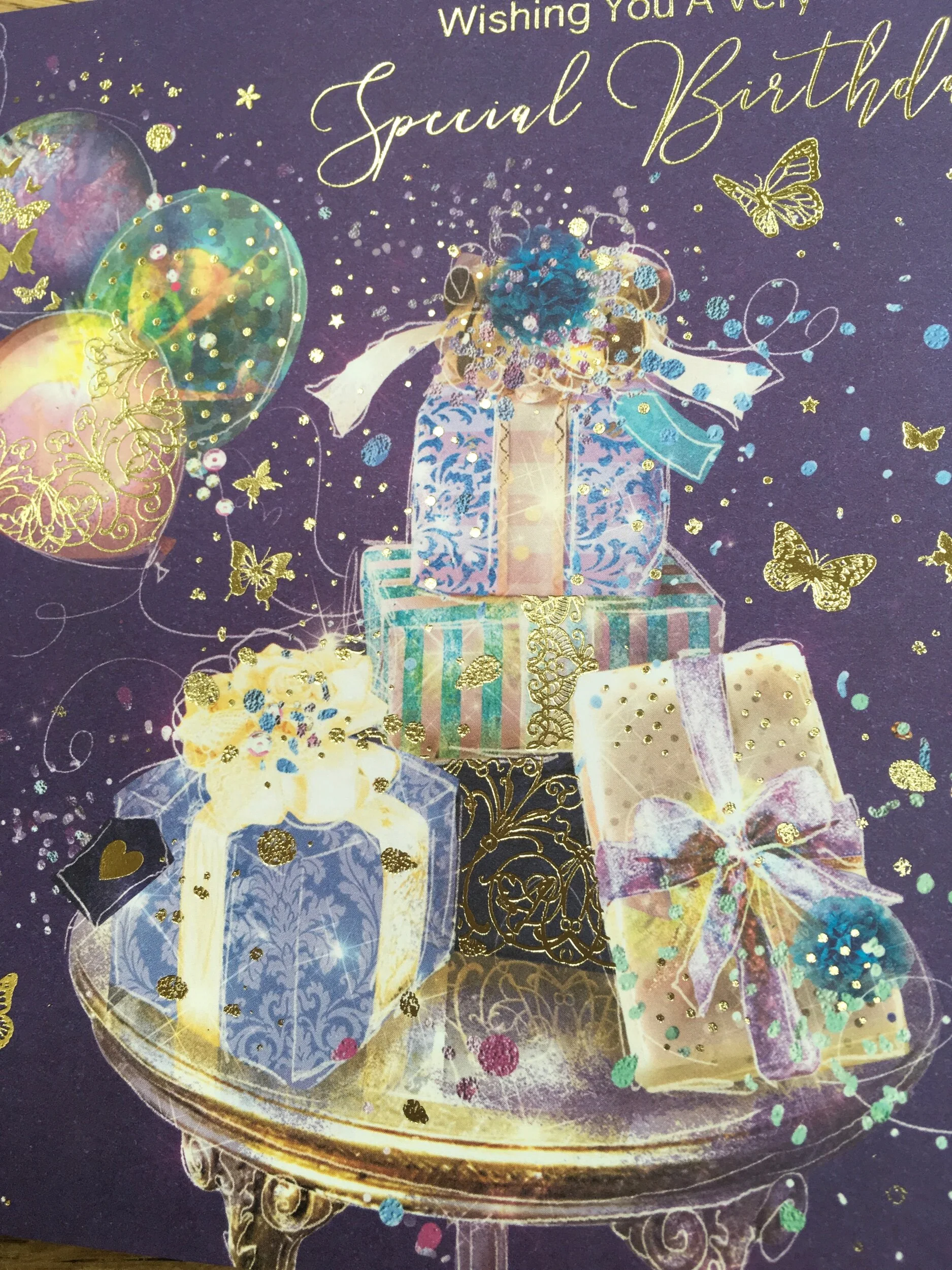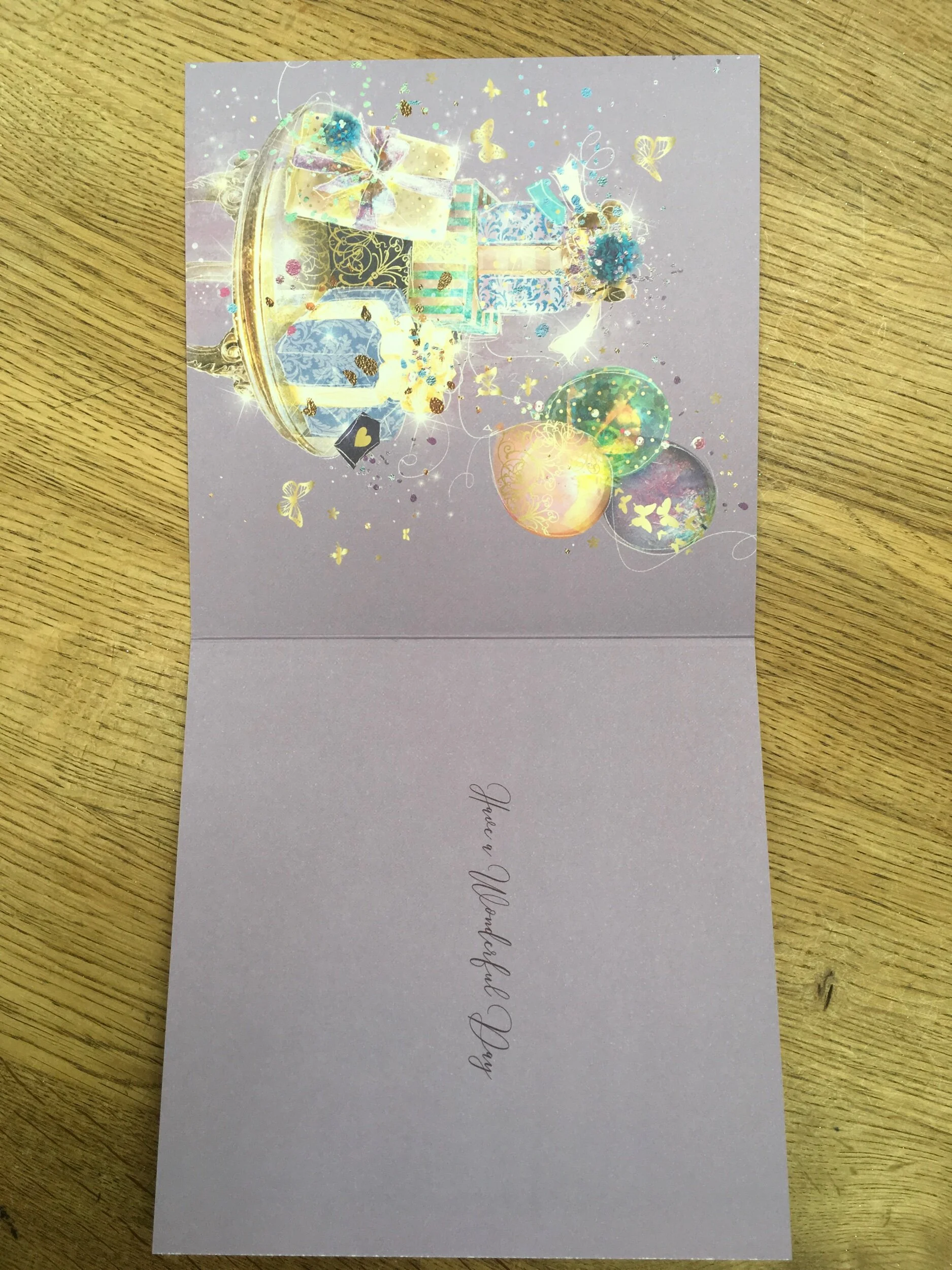 Special Wishes Birthday card design features a 3D attachment, foiling and inside a colour illustrated insert and