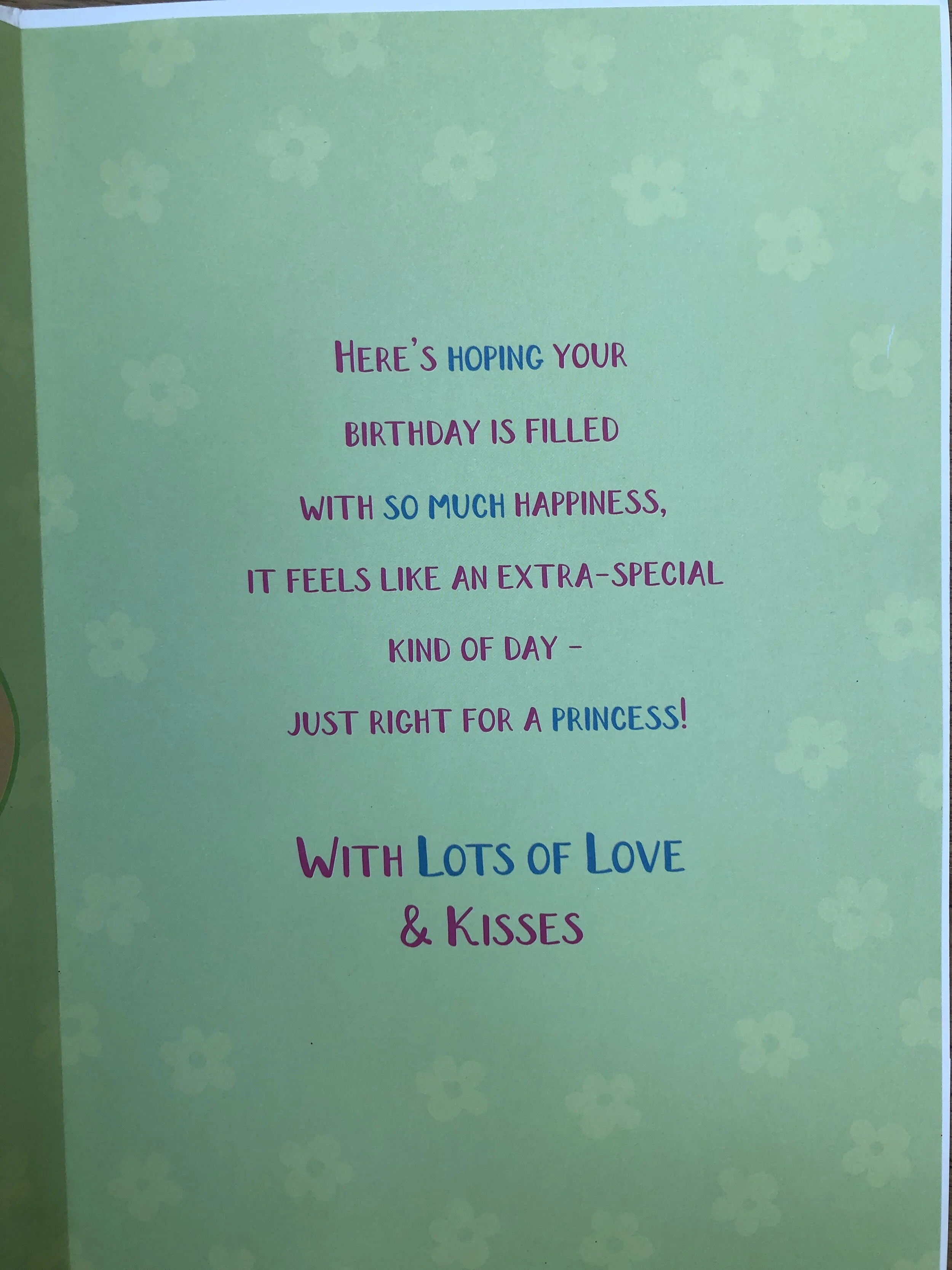 Goddaughter Birthday card is an Activity design that features full colour illustrated insert with colouring in picture for the Birthday girl to complete and a Fairy Tale Maze activity section