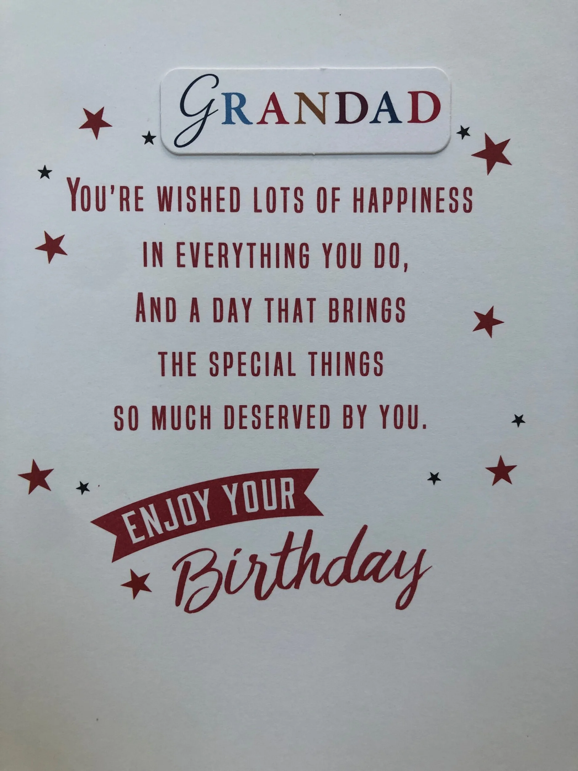 Grandad / Grandpa etc Categories: All Great Grandad Grandpa Grandad / Grandpa etc All | Great Grandad | Grandpa | Great Grandad birthday card £2.99 £0.00 Grandpa birthday card £1.99 Grandpa birthday card £1.50 Grandad birthdaycard £1.99 Grandad birthday card £2.99 Me to You Grandad birthday card £1.90 Sold Out Grandad birthday card £2.50 Grandad birthday card £2.50 Grandad birthdaycard £2.99 Grandad birthday card £2.50 Extra Special Grandad birthday card £7.99 Grandad birthday card £2.99 Grandad birthday card £2.99 Grandad birthday card £2.99 Grandad birthday card £1.99 Sold Out Grandad birthday card £1.99
