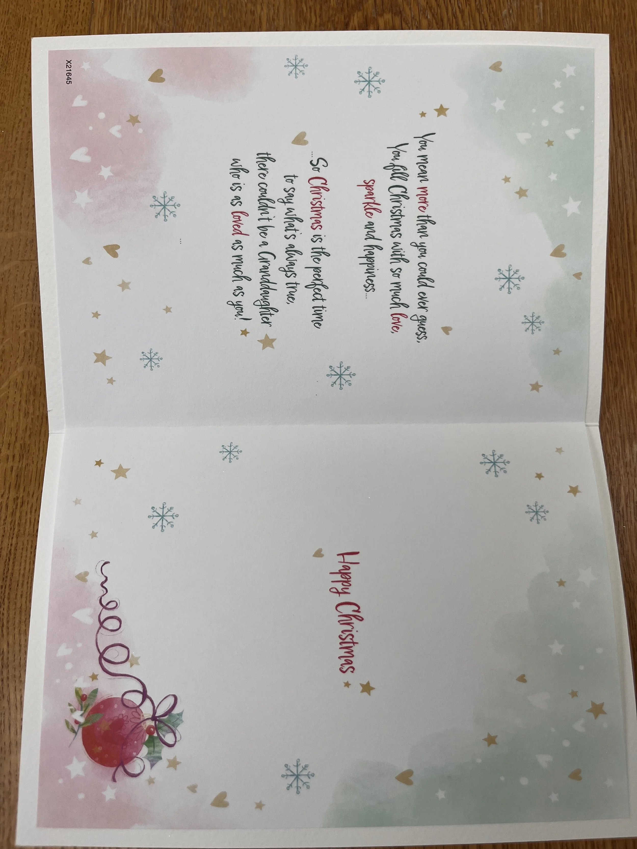 Granddaughter Christmas card