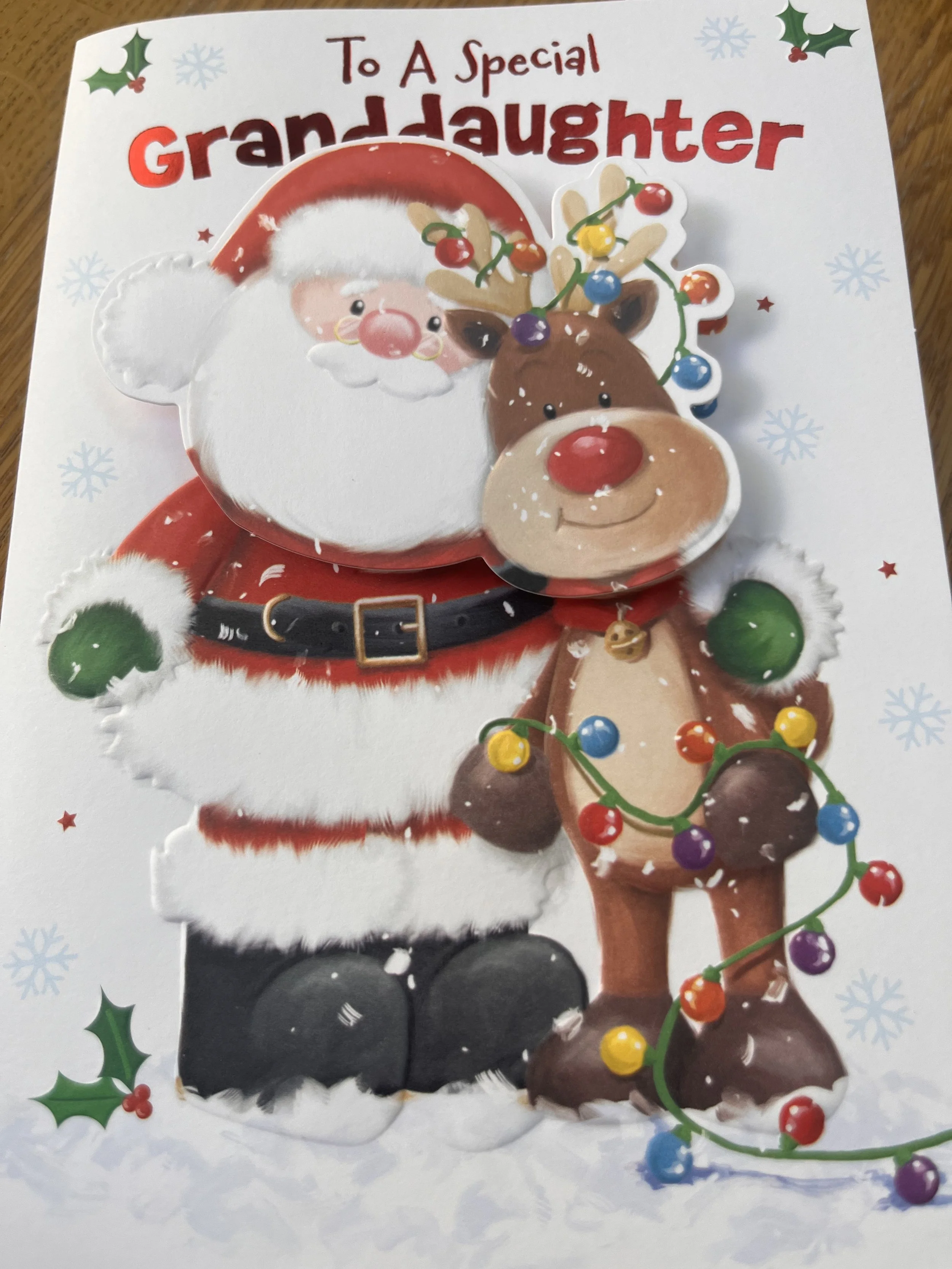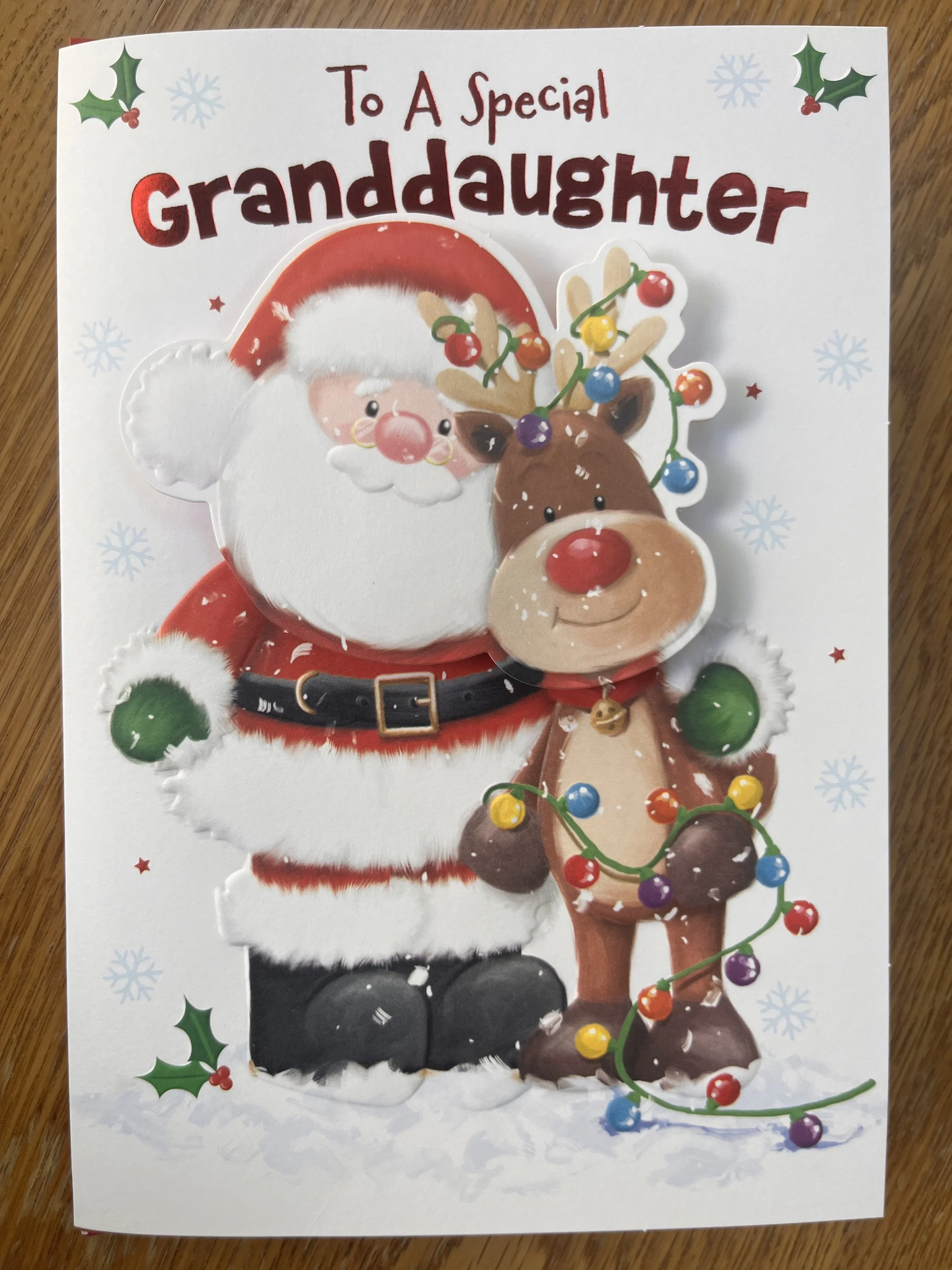 Special Granddaughter Christmas card requires standard 1st or 2nd class postage