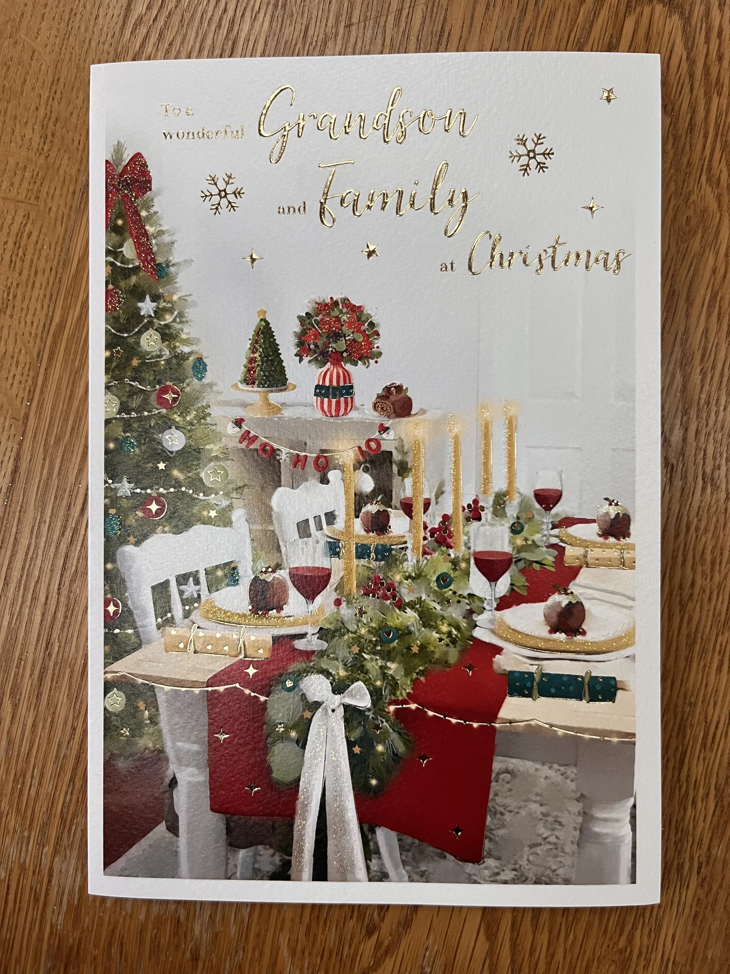 Grandson and Family Christmas Card requires Standard 1st or 2nd class postage
