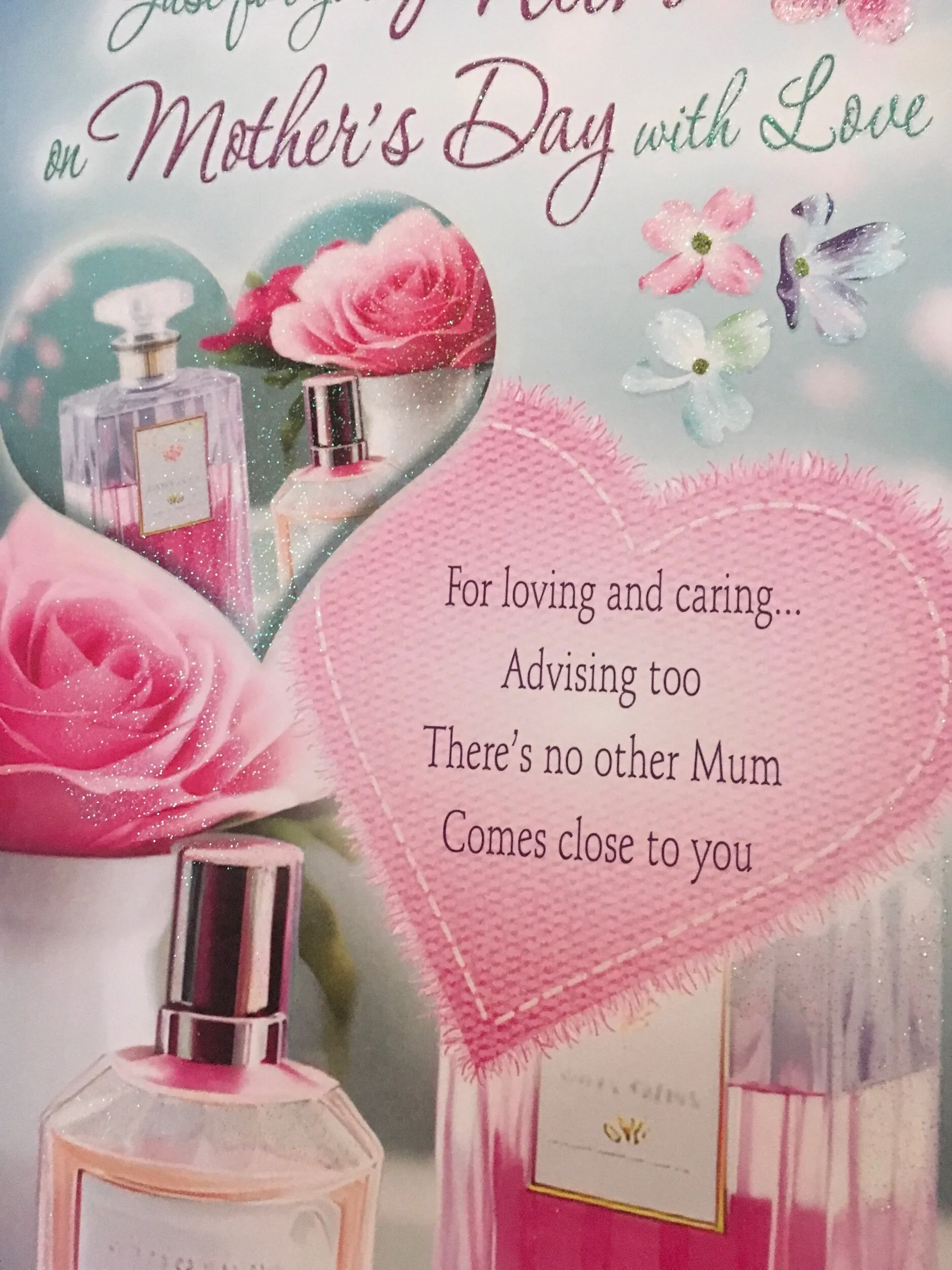 Mum Mother’s Day card is a really lovely"Loving Words" card that features encapsulated flitteron lovelycolour photographic imagery with "Loving Words" that continue inside on a top quality insert