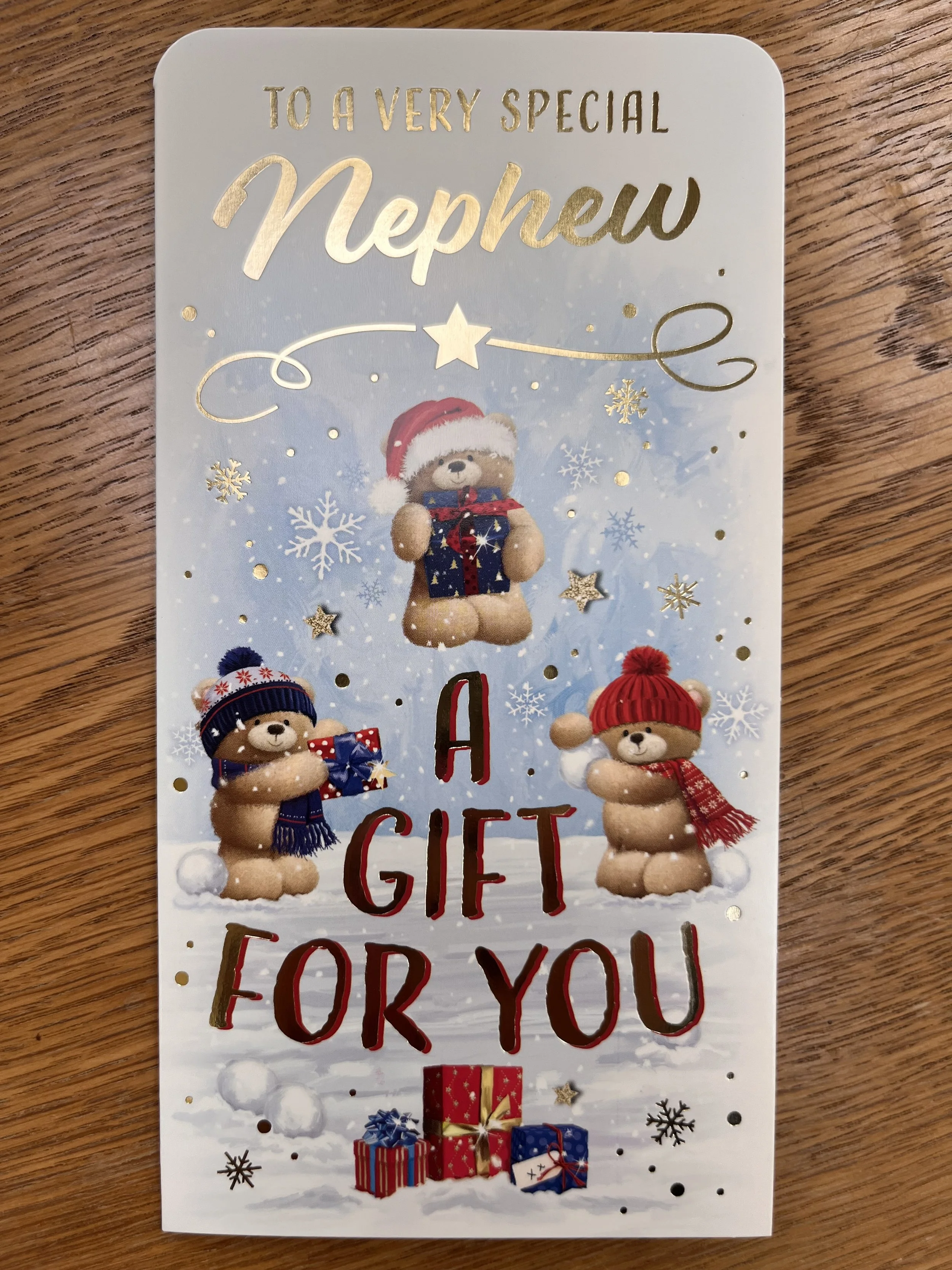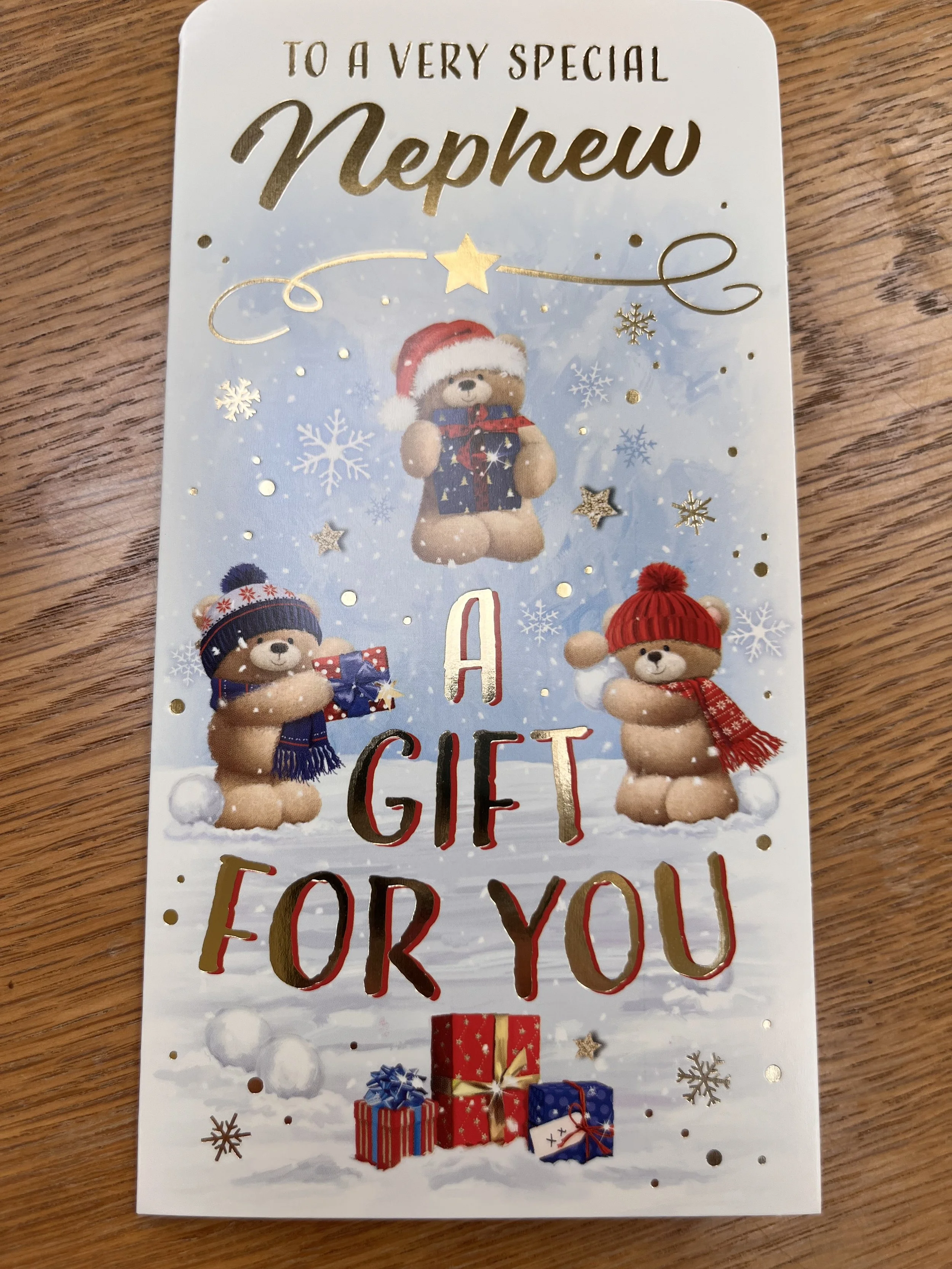 Nephew Christmas Money Wallet design features foiling and inside a special note holder
