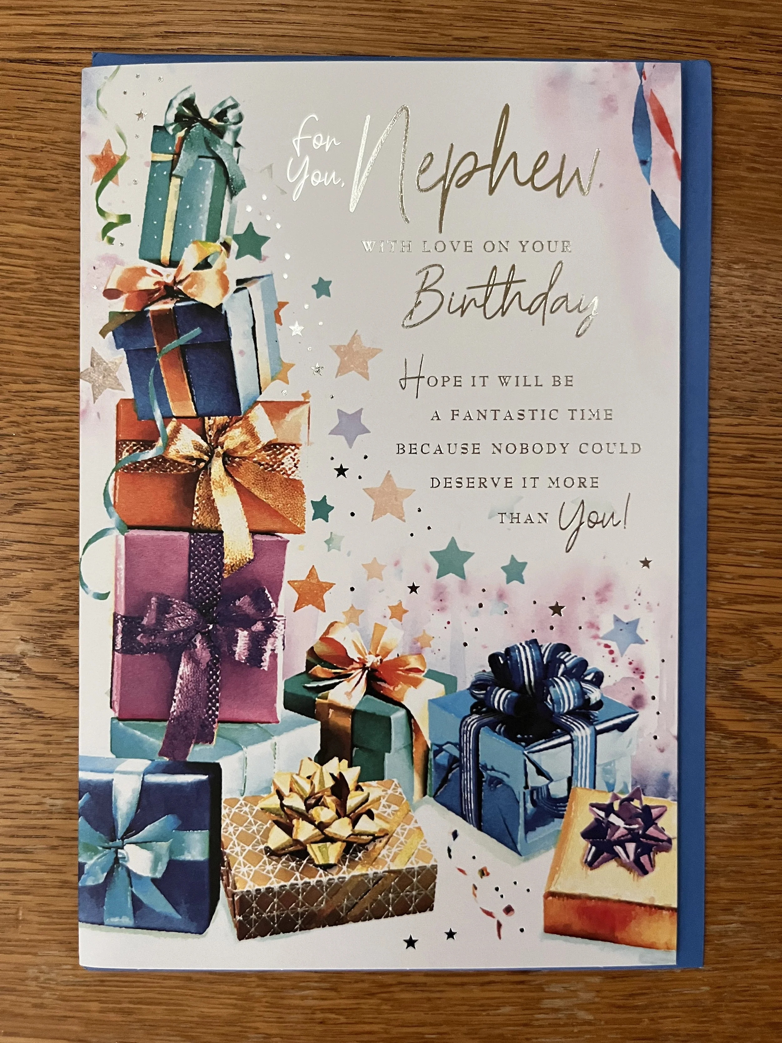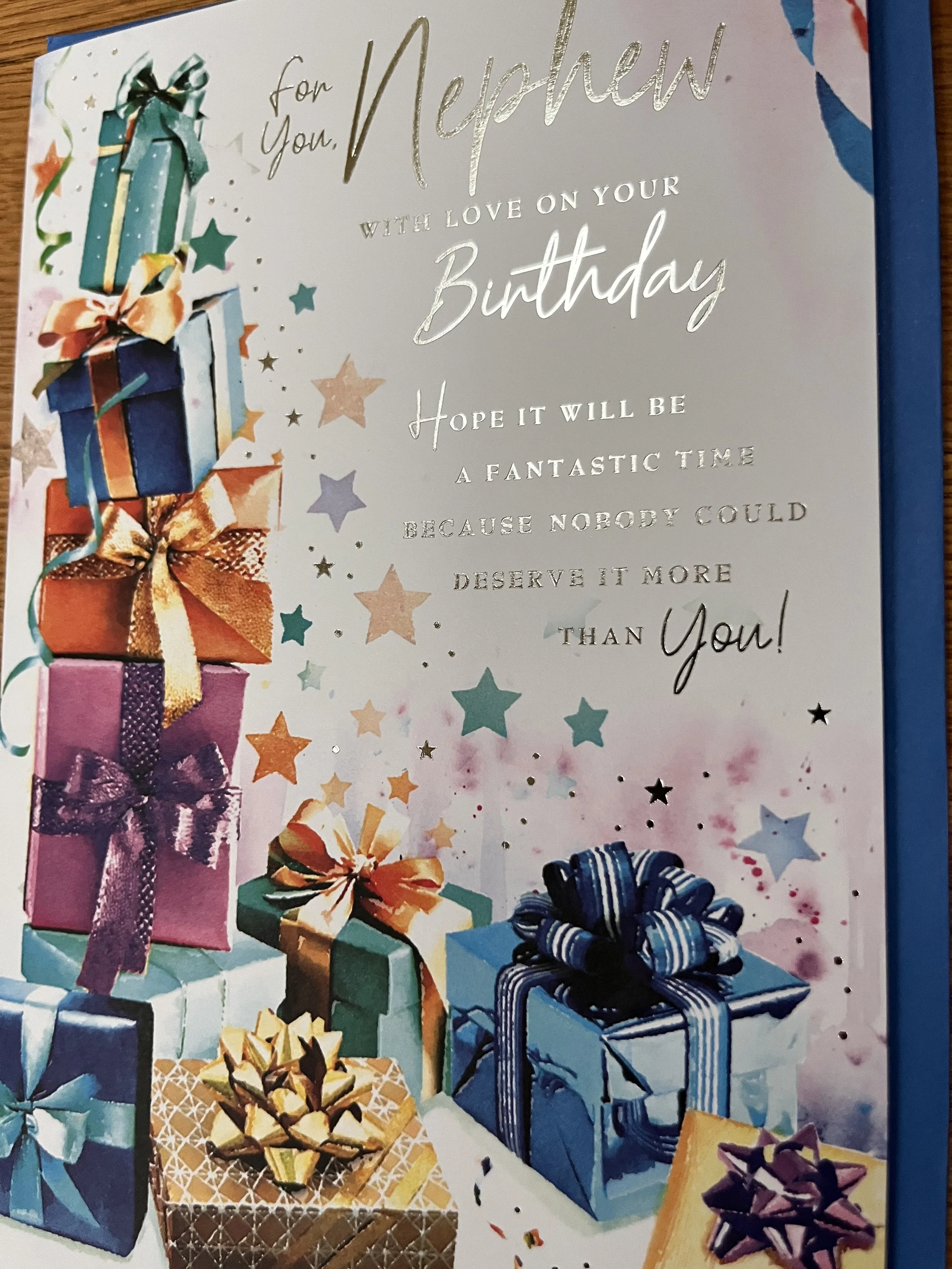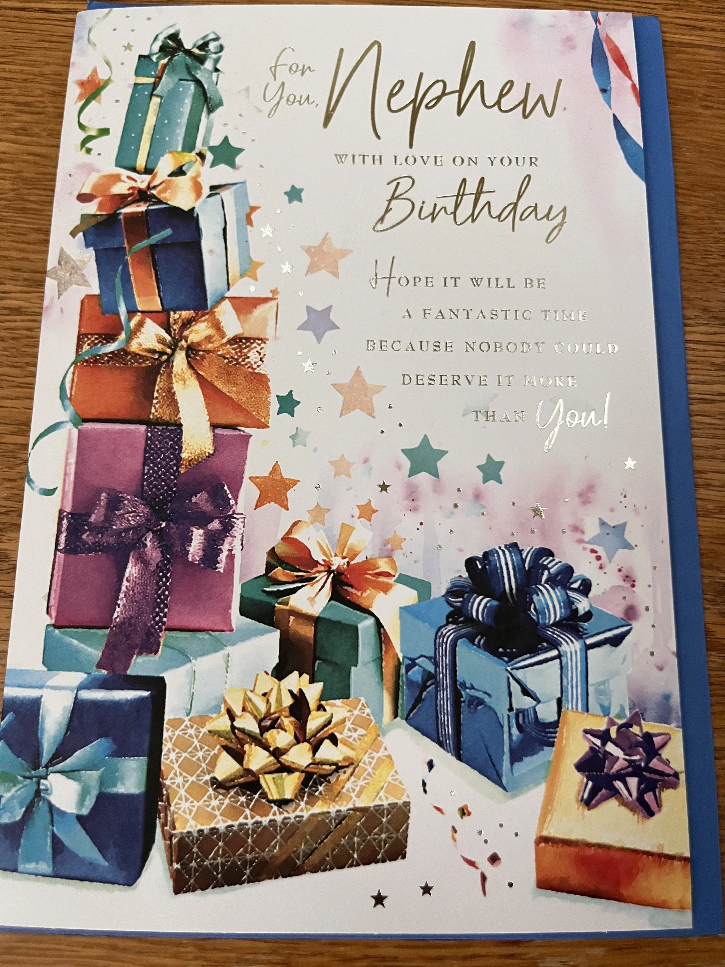 Nephew Birthday Card Is a lovely design has which has effective foil with heartfelt words that continue inside on a super full colour illustrated insert