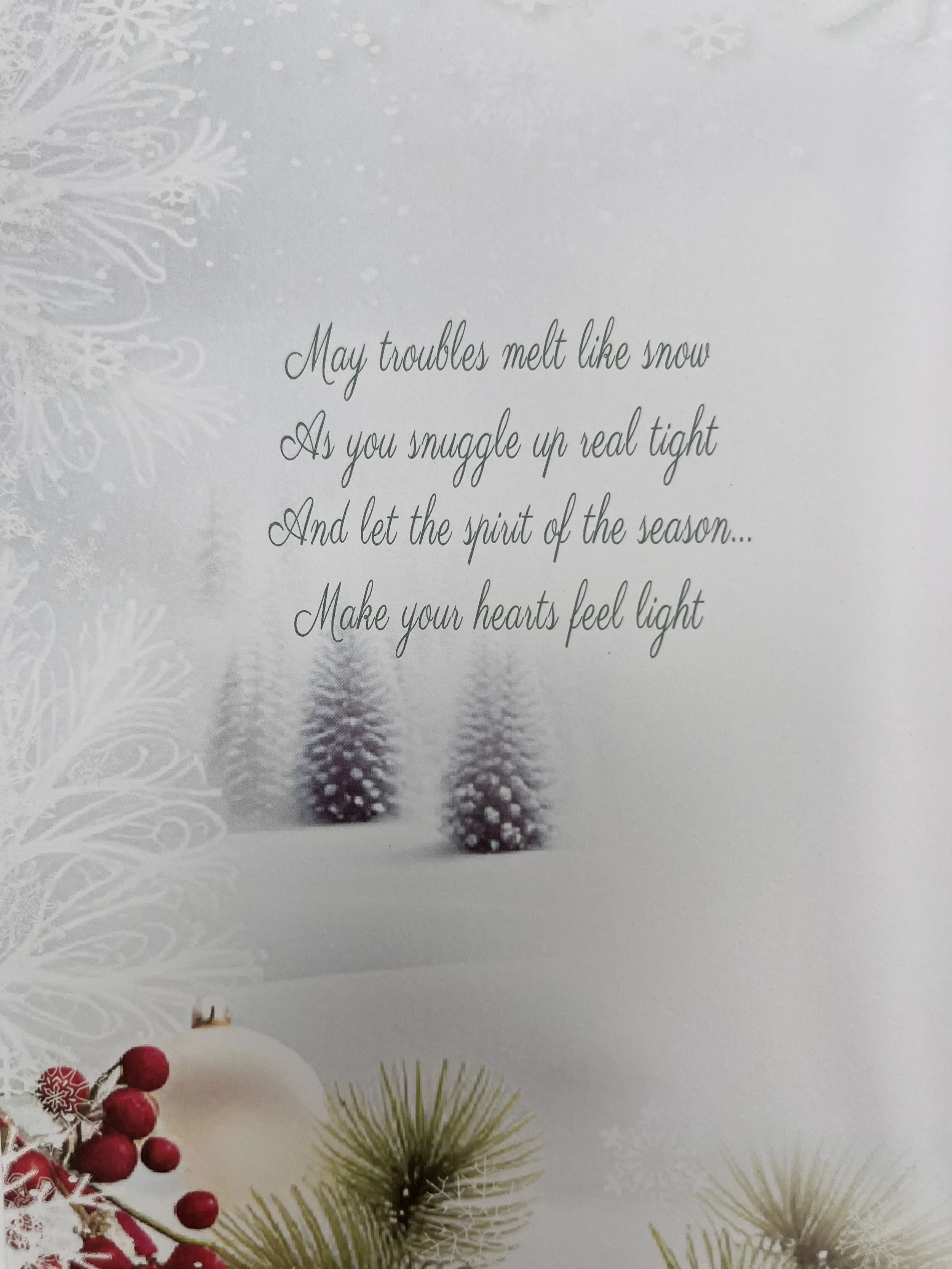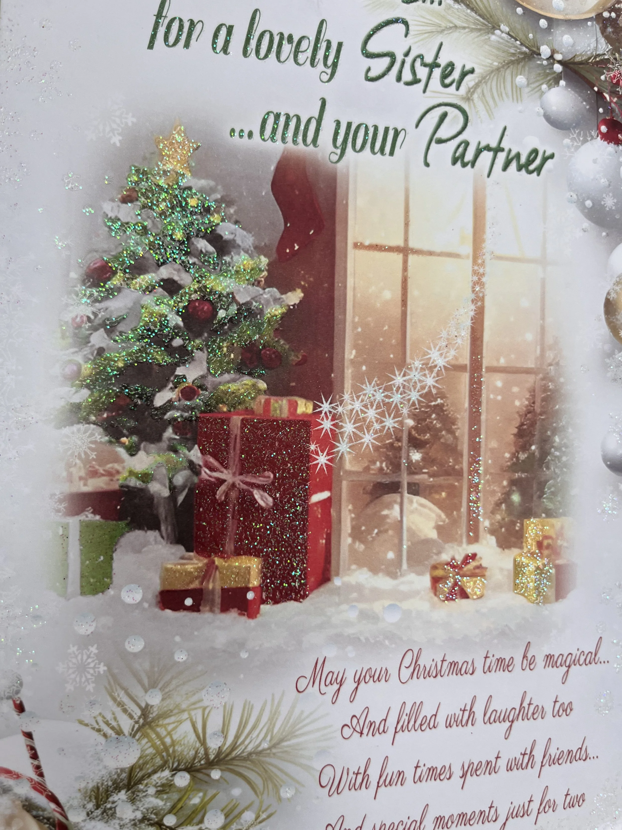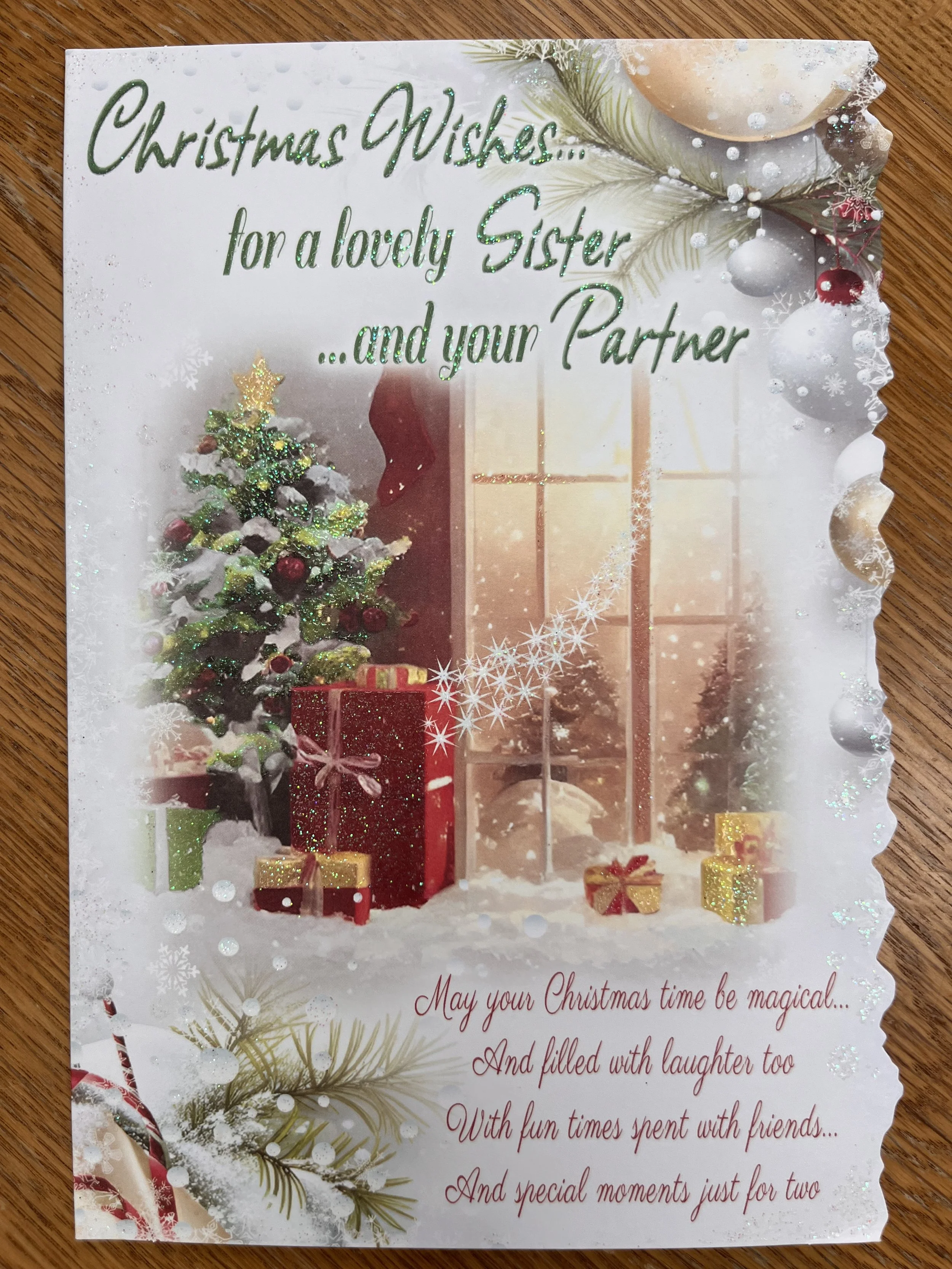 design has delicate, effective flitter and inside a pretty festive colour illustrated insert