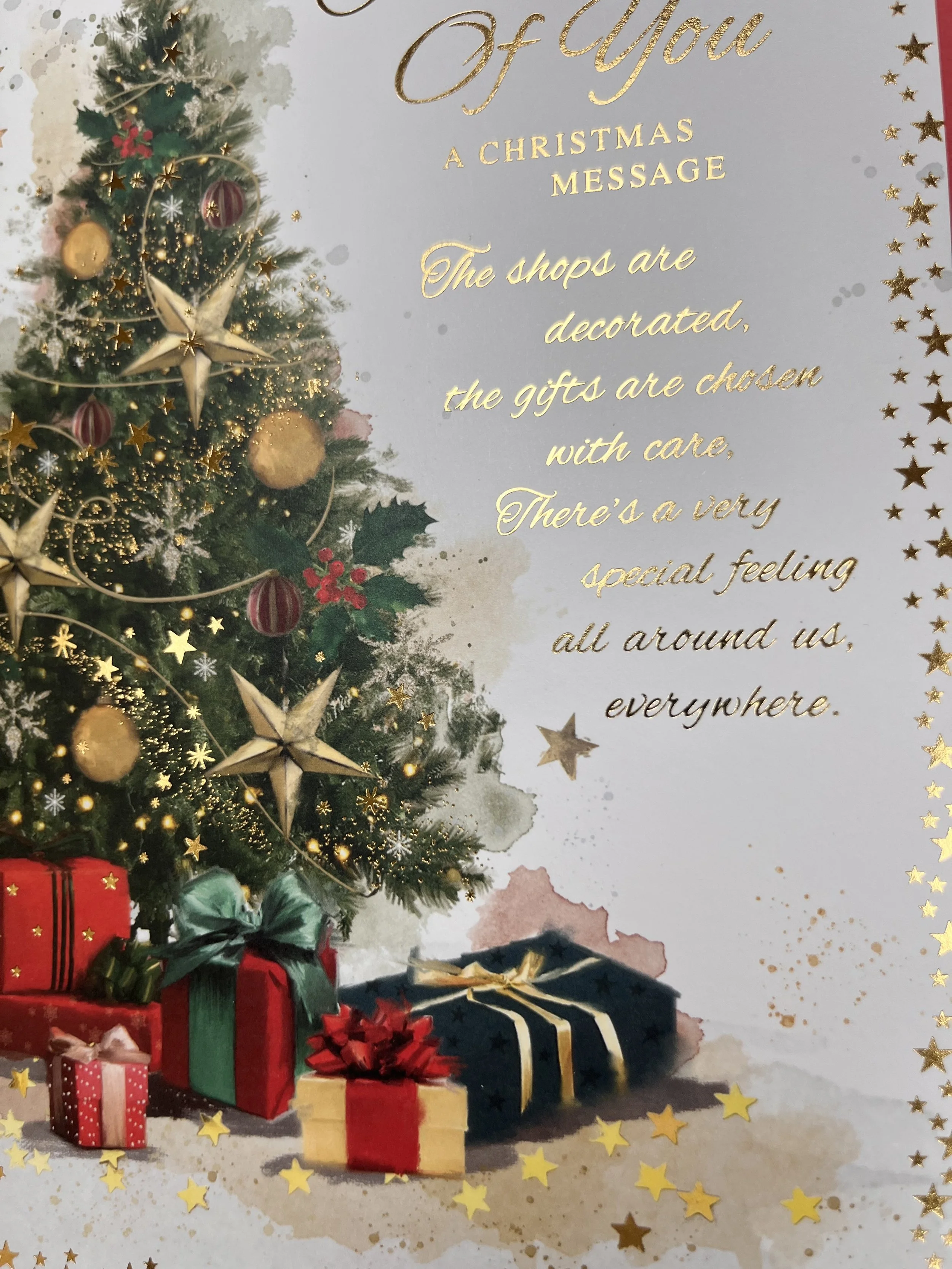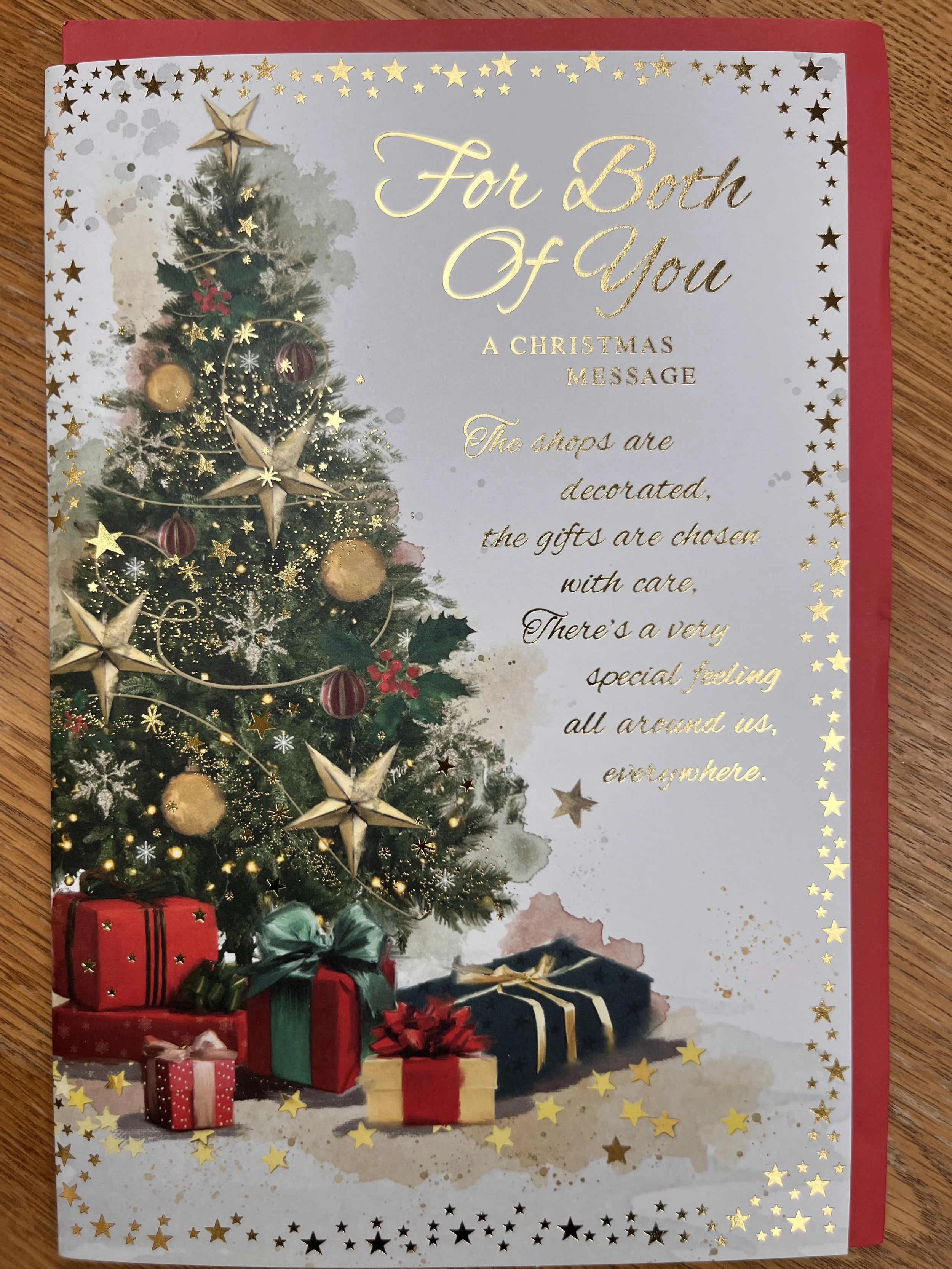 Both of You Christmas card design features effective foil with heartfelt sentiment that continues inside on a full colour illustrated insert