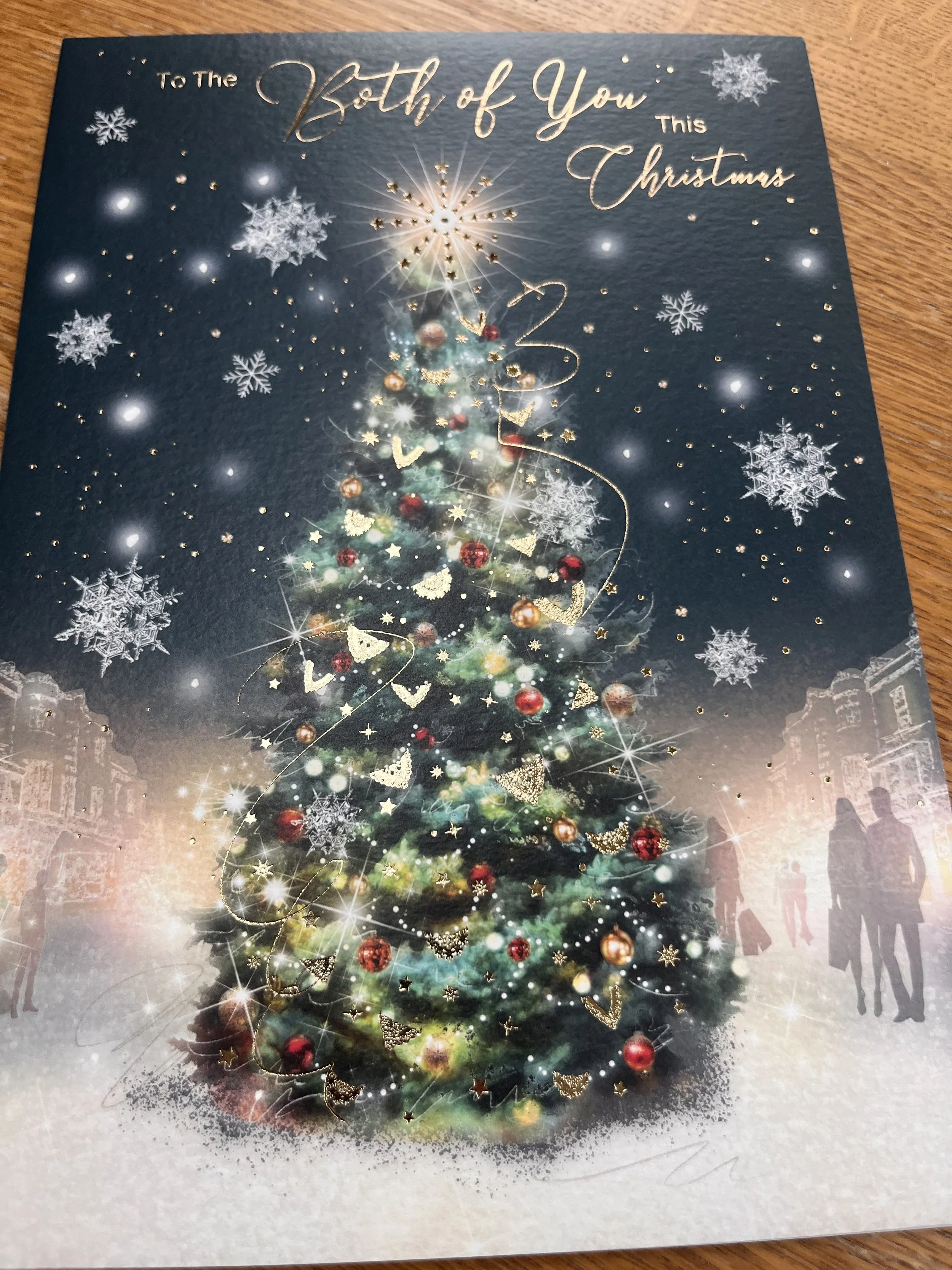 To Both of You Christmas Card features a 3D attachment, shaped edges, effective gold foiling and inside a full colour illustrated insert with verse