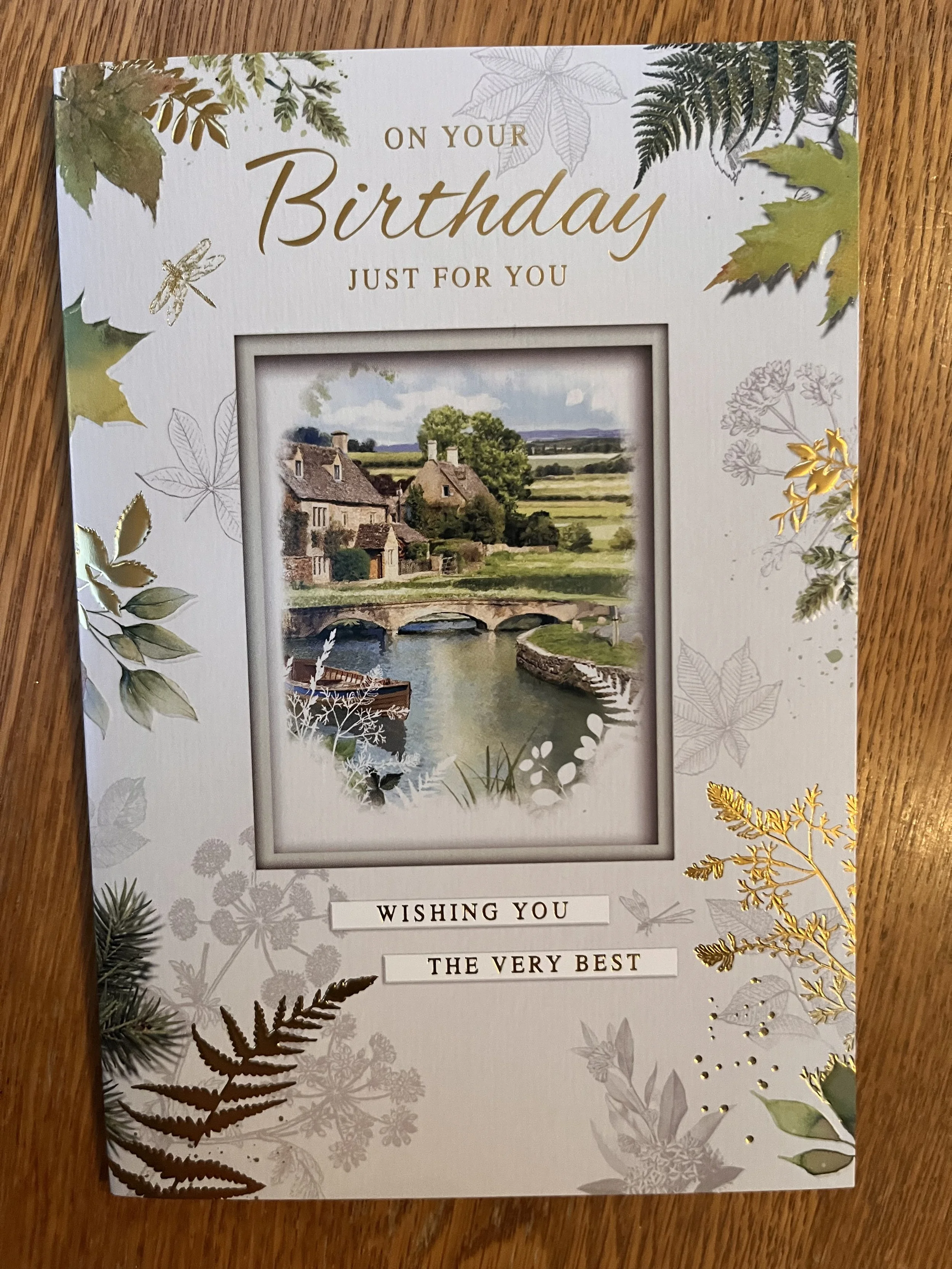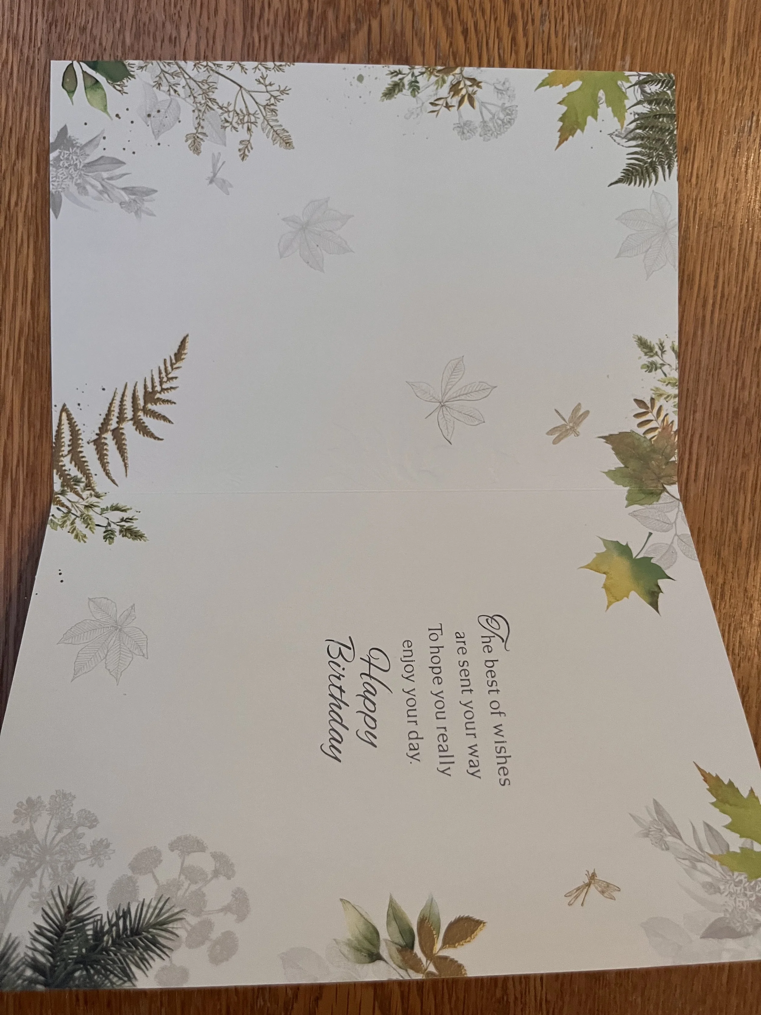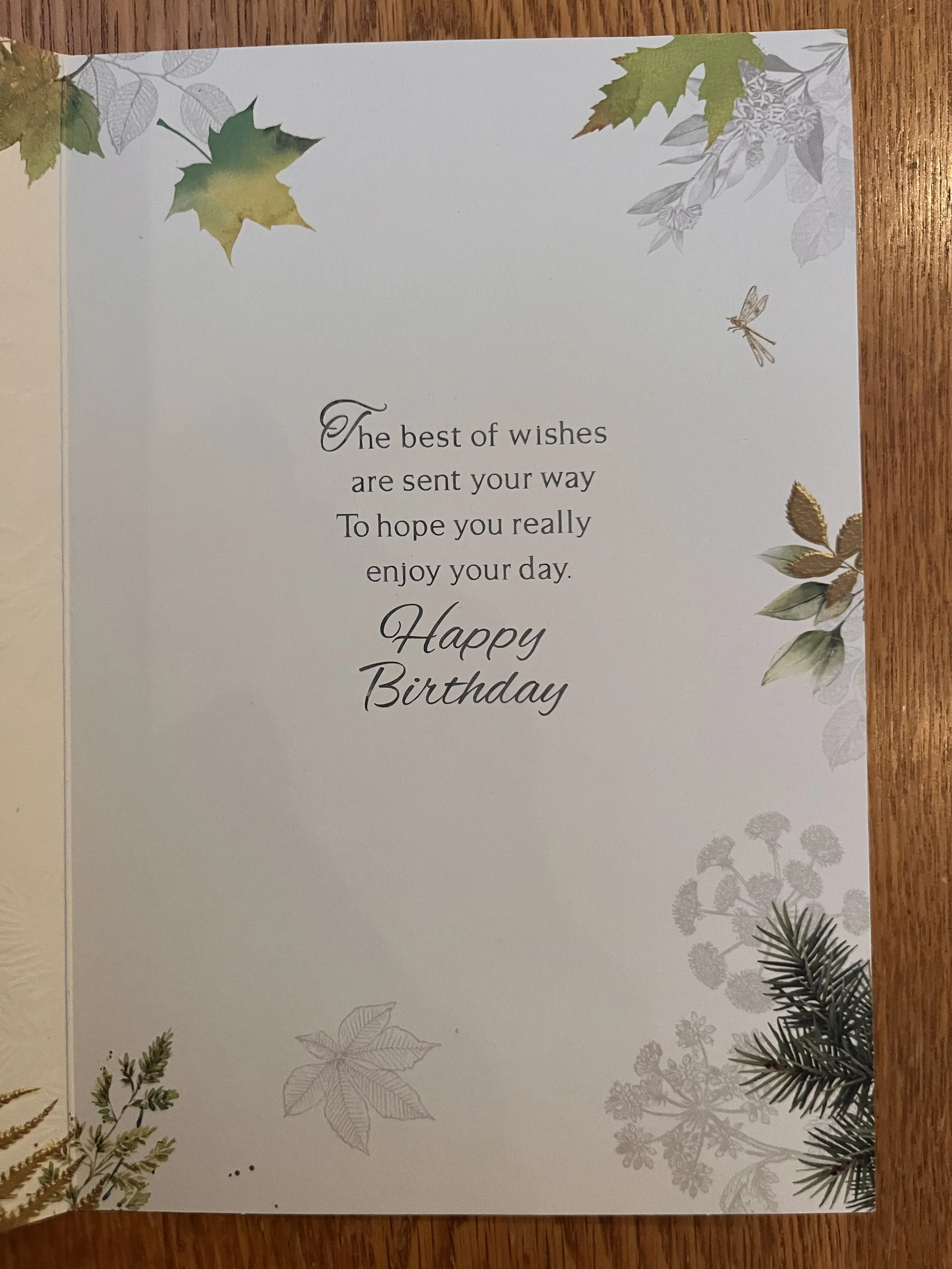 Male Open Birthday Card design features effective gold foil and colour illustrations inside with verse
