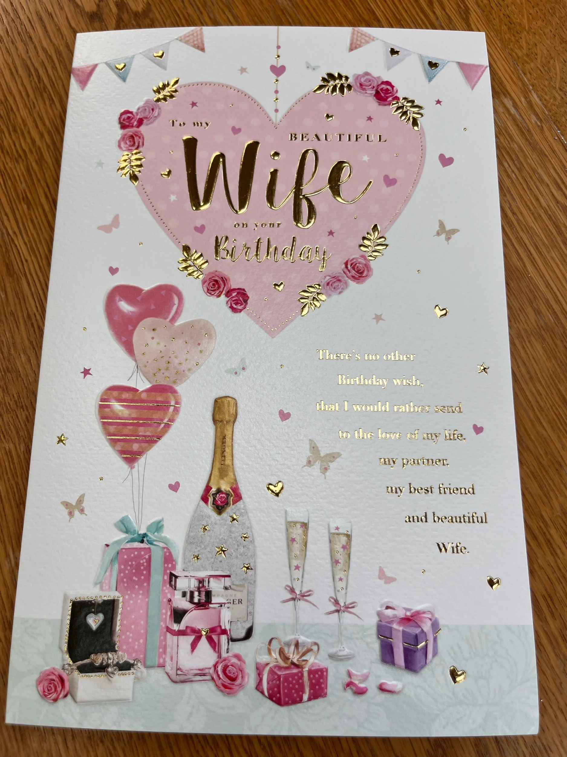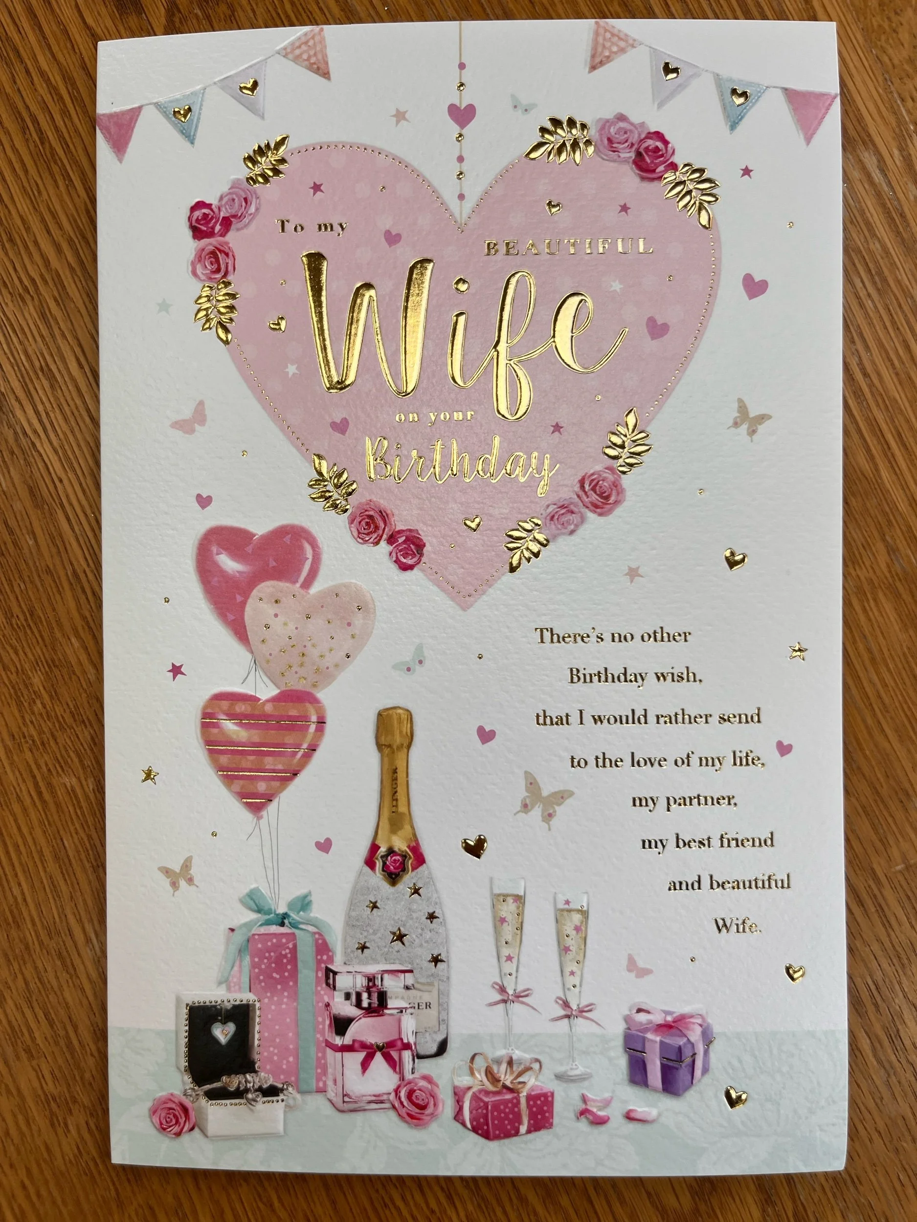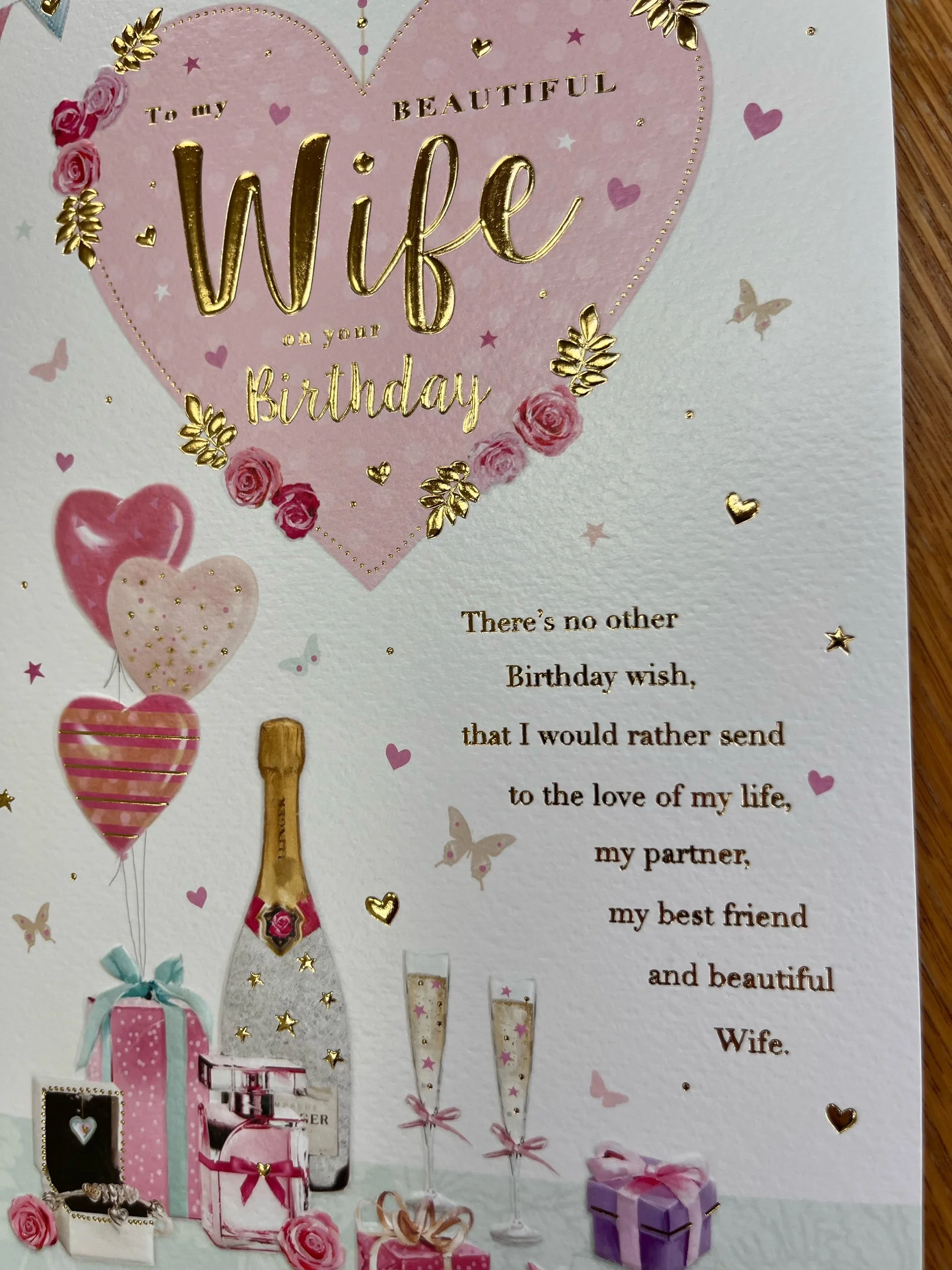 Wife Birthday Card is an extra special, book type of design, that features effective foil, embossing and inside 7 pages of top quality colour illustrated inserts with heartfelt Words