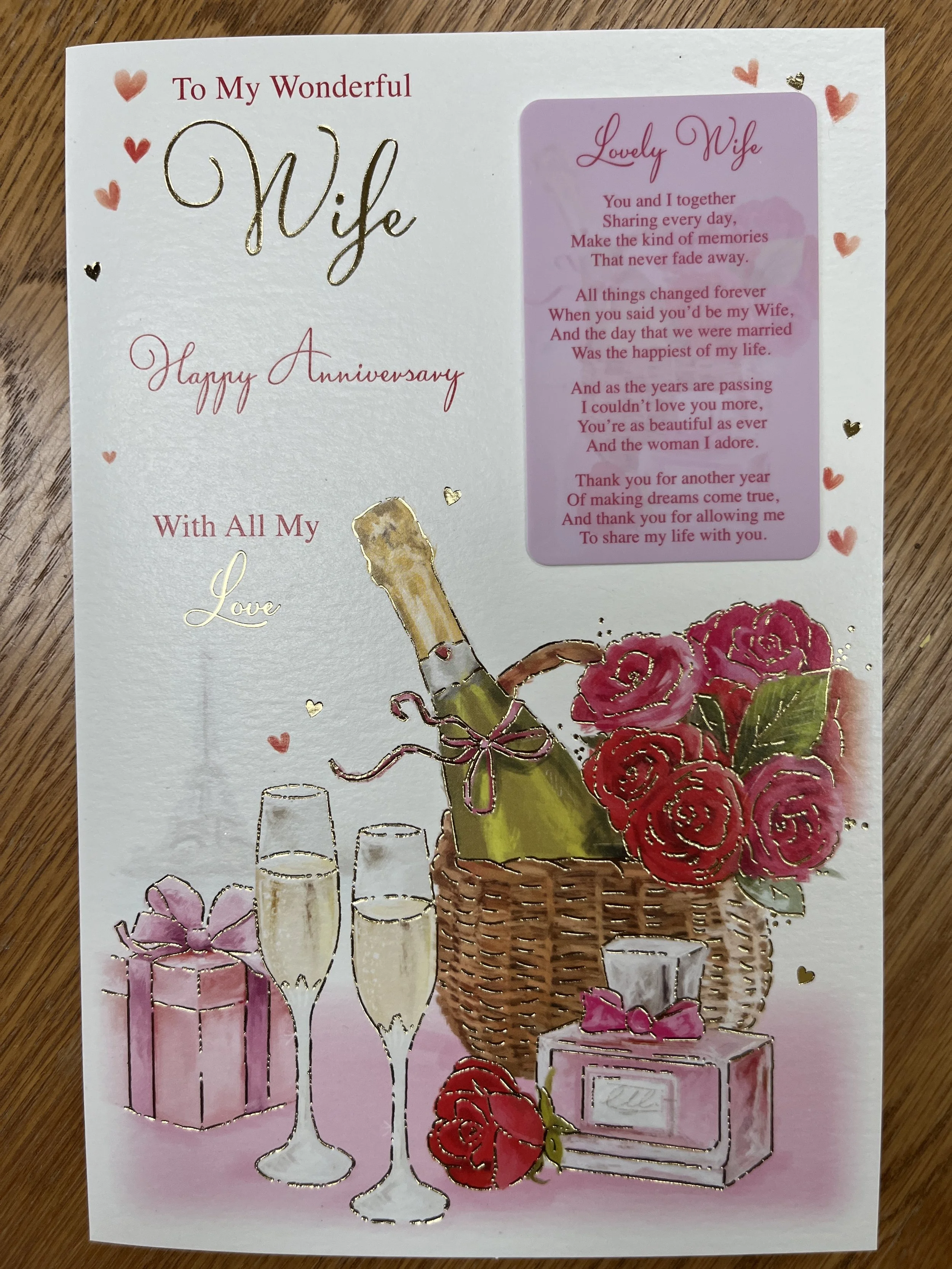 Wife Wife Anniversary card £3.99 £0.00 Sold Out Wife Anniversary card £2.99 Funny Our anniversary card £2.99 Wife Anniversary card £5.99 Sold Out Wife Anniversary card £5.99 Funny Wife Anniversary card £1.99 Wife Anniversary card £2.99 Wife Anniversary card £2.99 Wife Anniversary card £3.99 Wife Anniversary card £2.50 Me To You Wife anniversary card £4.99 Wife Anniversary card £2.99 Wife Anniversary £1.99 Wife Anniversary card £2.99